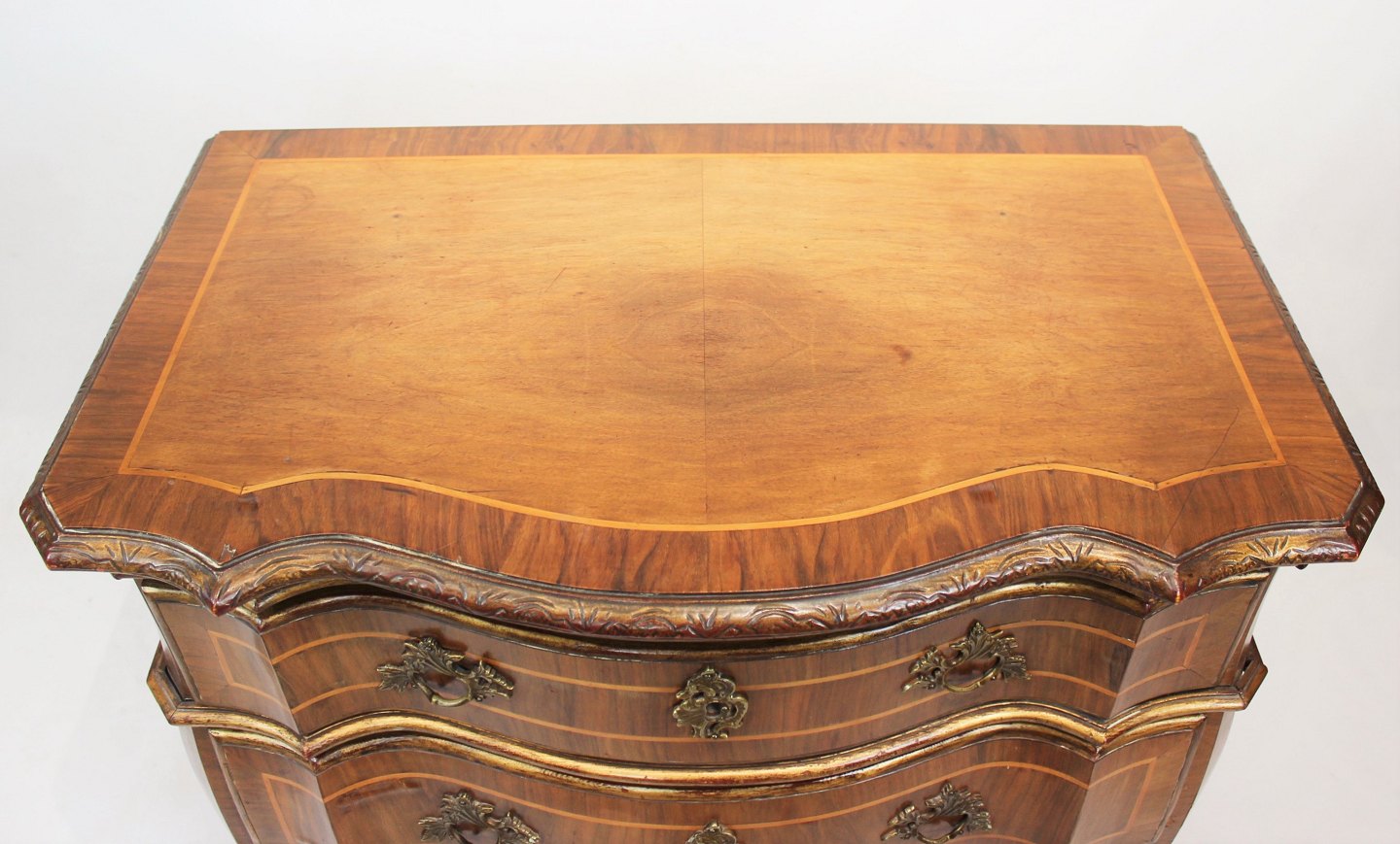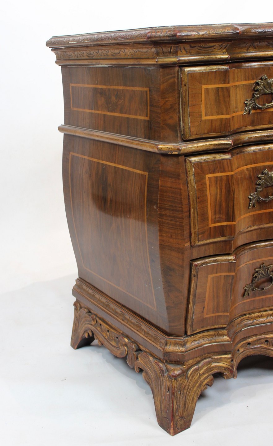 Rococo chest of drawers in walnut from Denmark and around the year 1880.