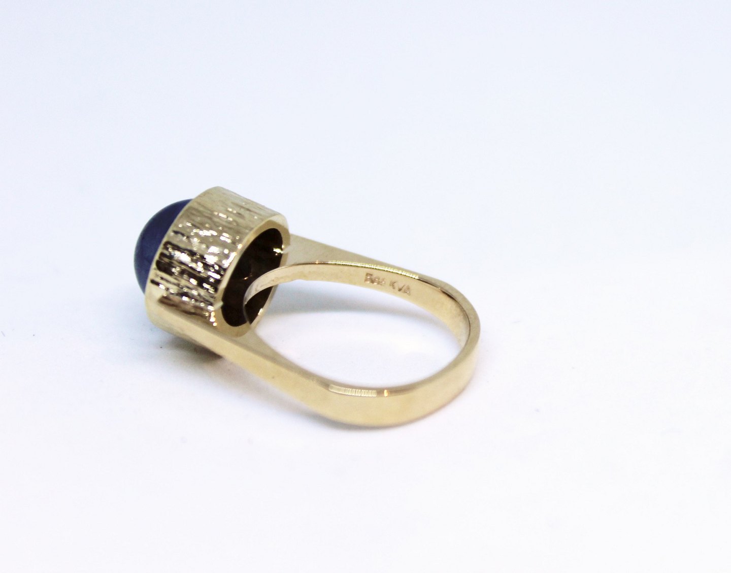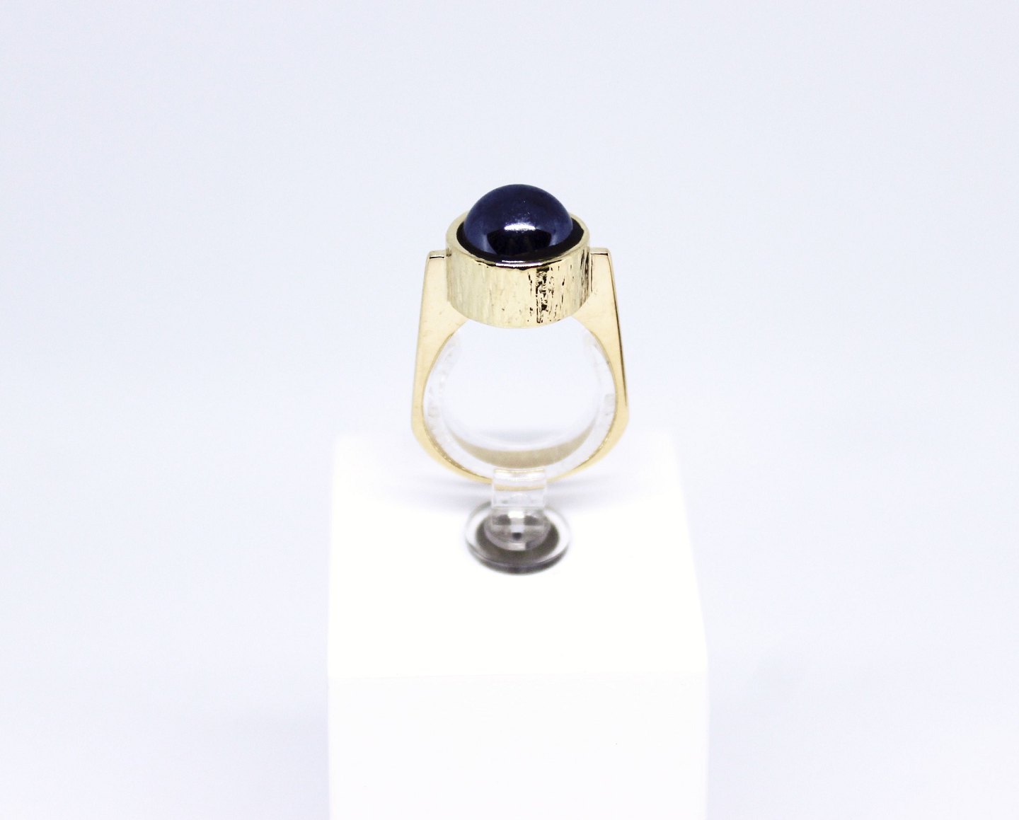 Ring of 14 carat gold decorated with a blood stone and stamped KVA.
