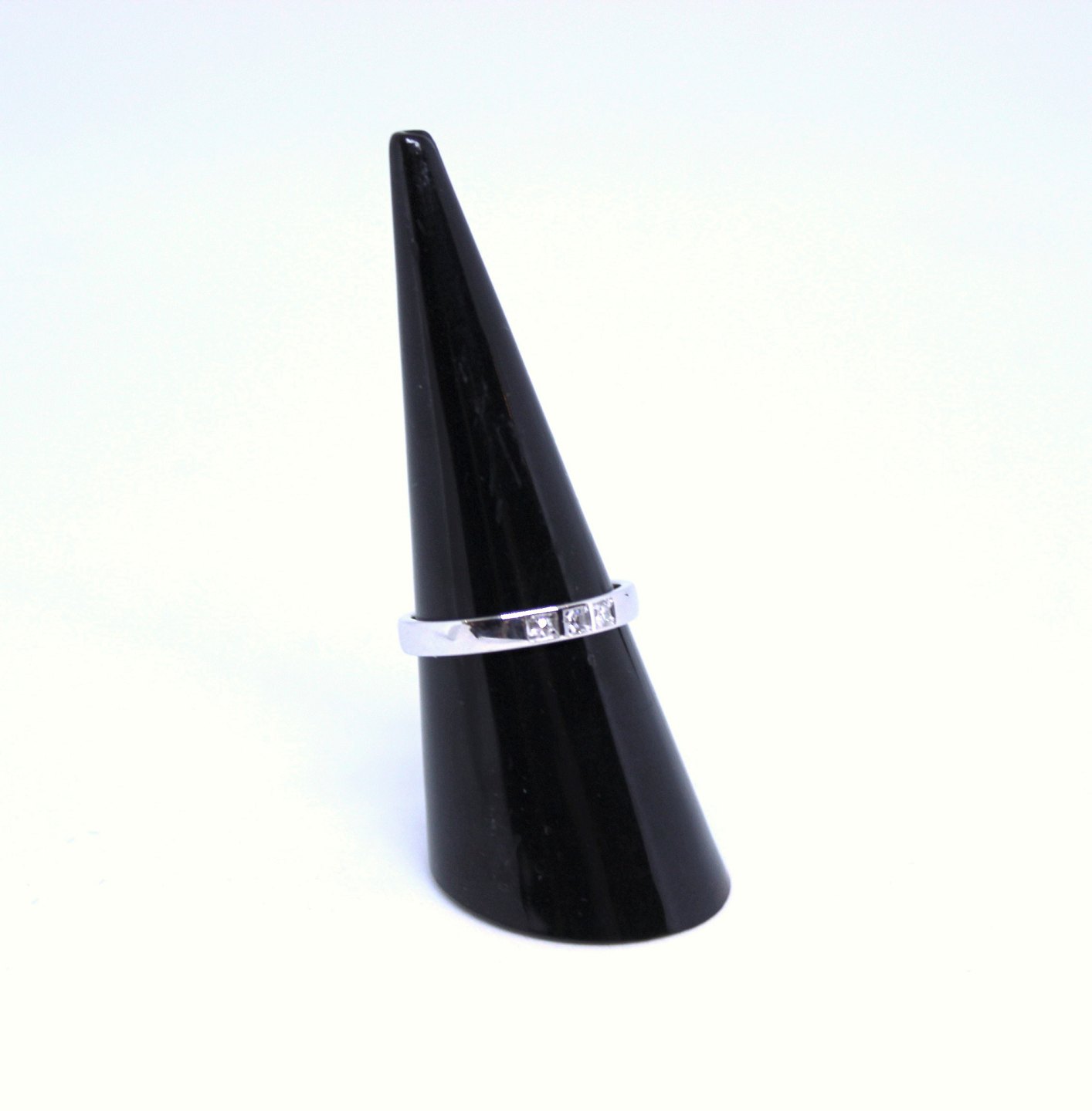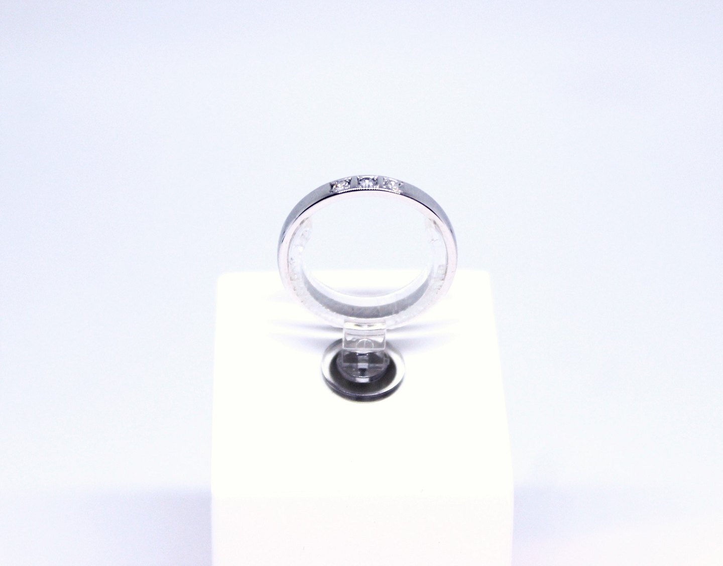 Ring of 14 carat white gold decorated with 3 diamonds. 5000m2 showroom.