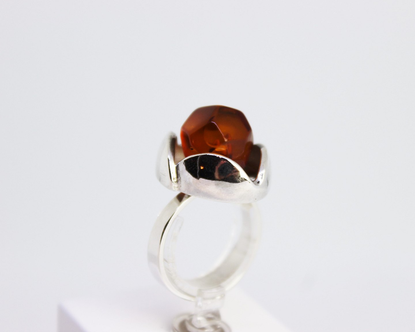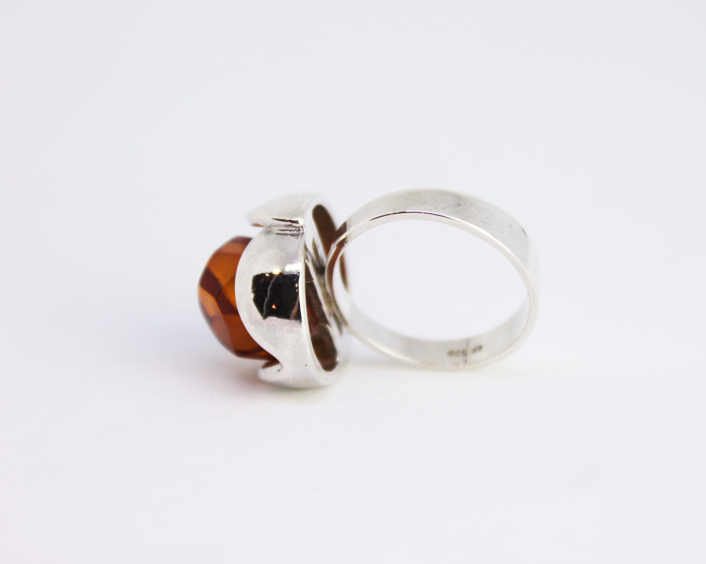 Ring af 925 sterling sølv dekoreret med rav og stemplet EF. Vi har 2 stk. på lager.