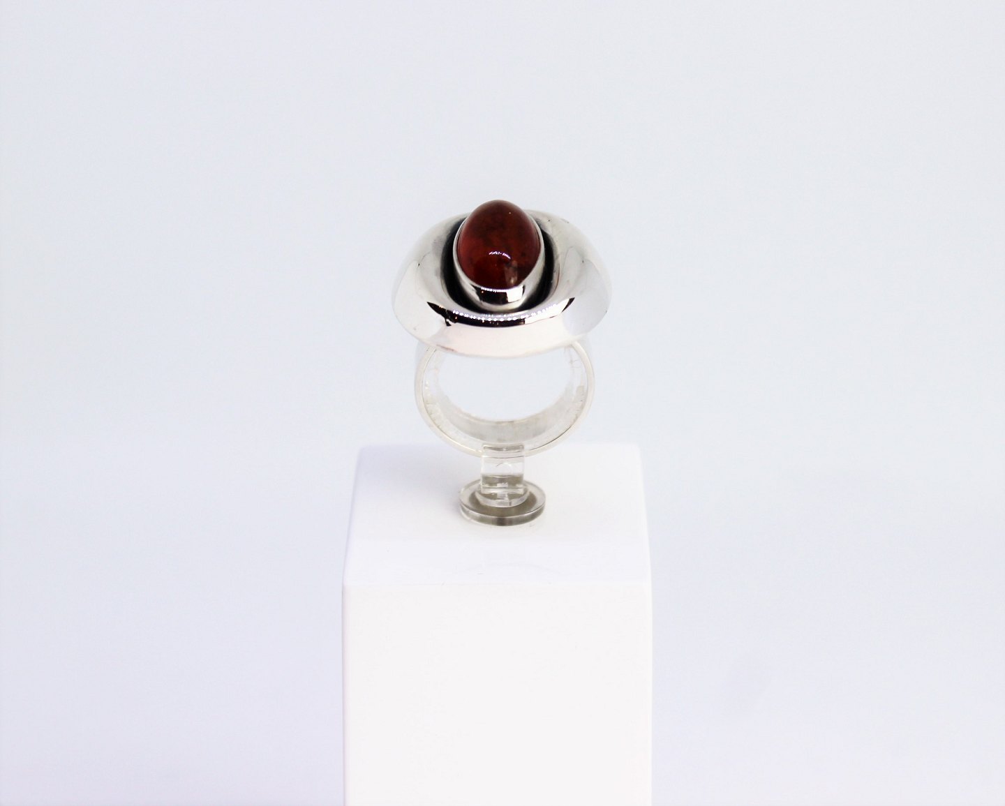 Ring af 925 sterling sølv dekoreret med rav og stemplet N.E. From.