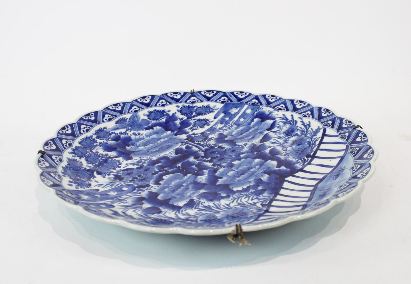 Kinesisk porcelæn fad i smukke mørke blå farver fra 1780.