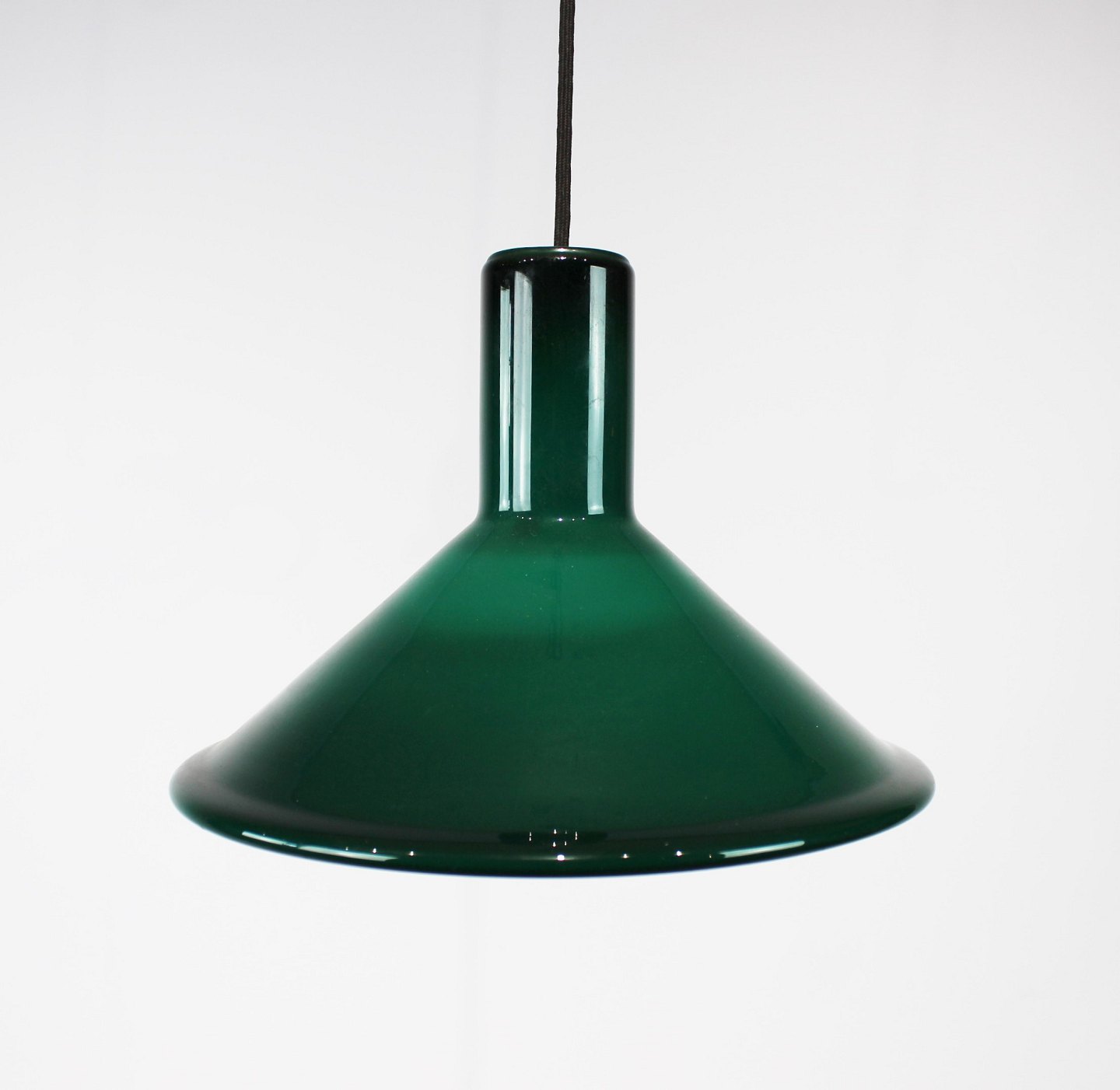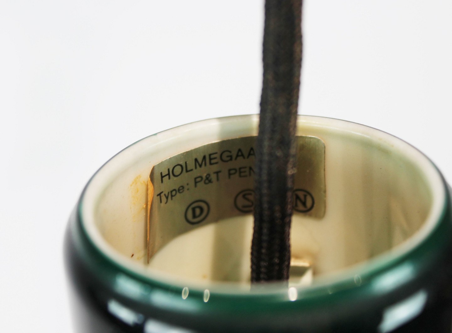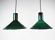 SolgtEt par mørkegrønne P&T glas pendler af Michael Bang for Holmegaard. Lamperne er i flot brugt stand.