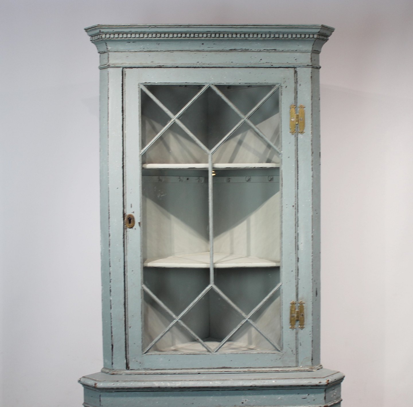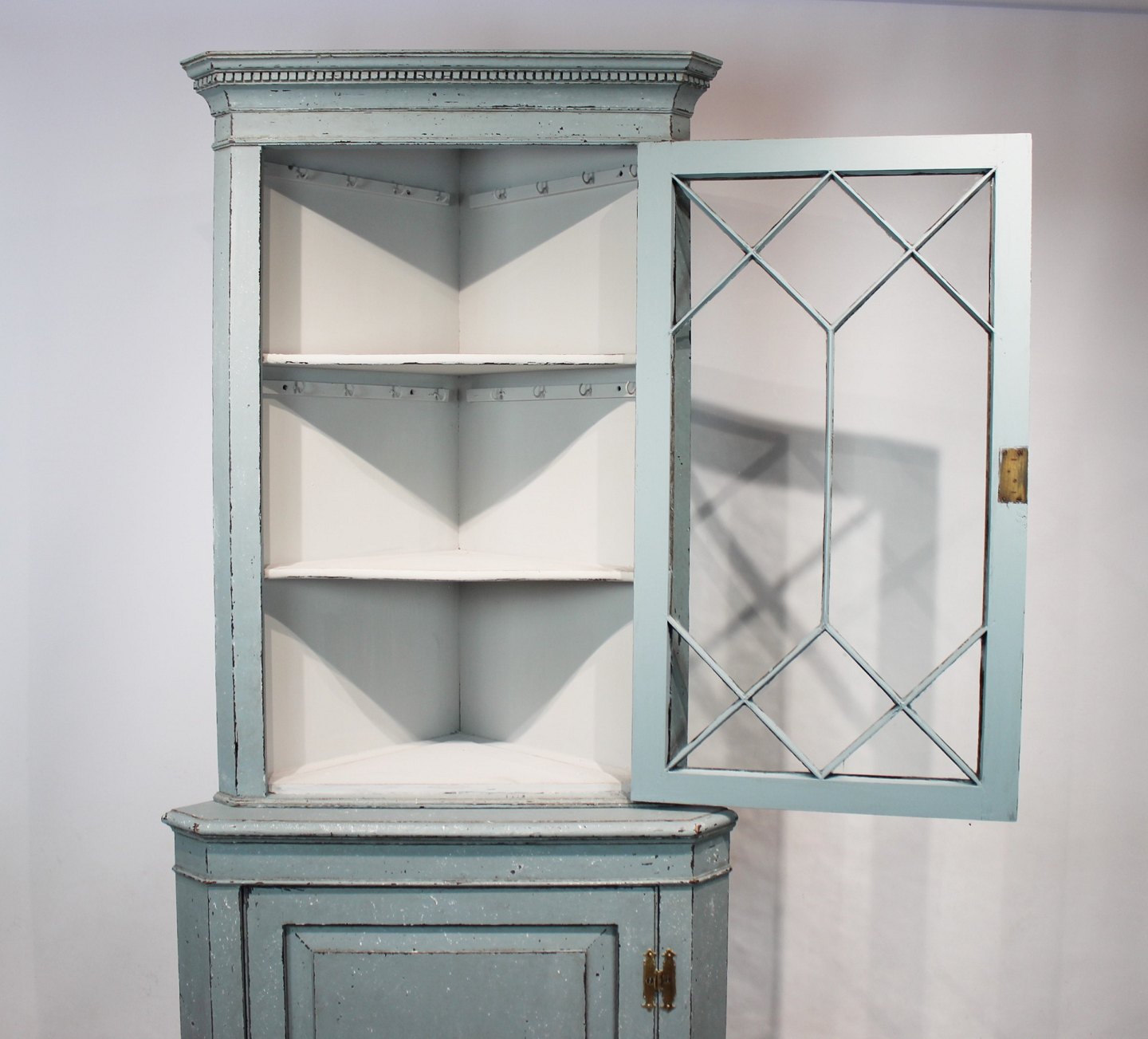 SoldLarge blue painted gustavian corner cabinet from the 1880s, in great antique condition.