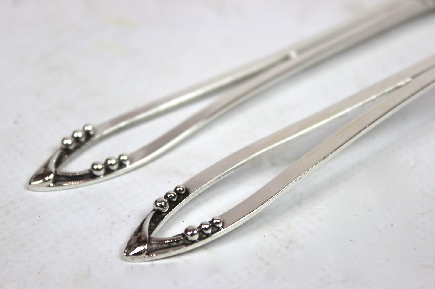 Server fork, no. 45, and marmeladespoon, no. 43, in other pattern by Georg Jensen. 675 DKK for each item