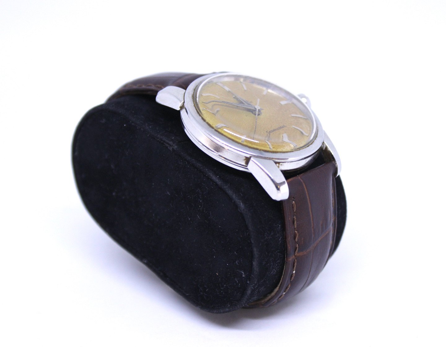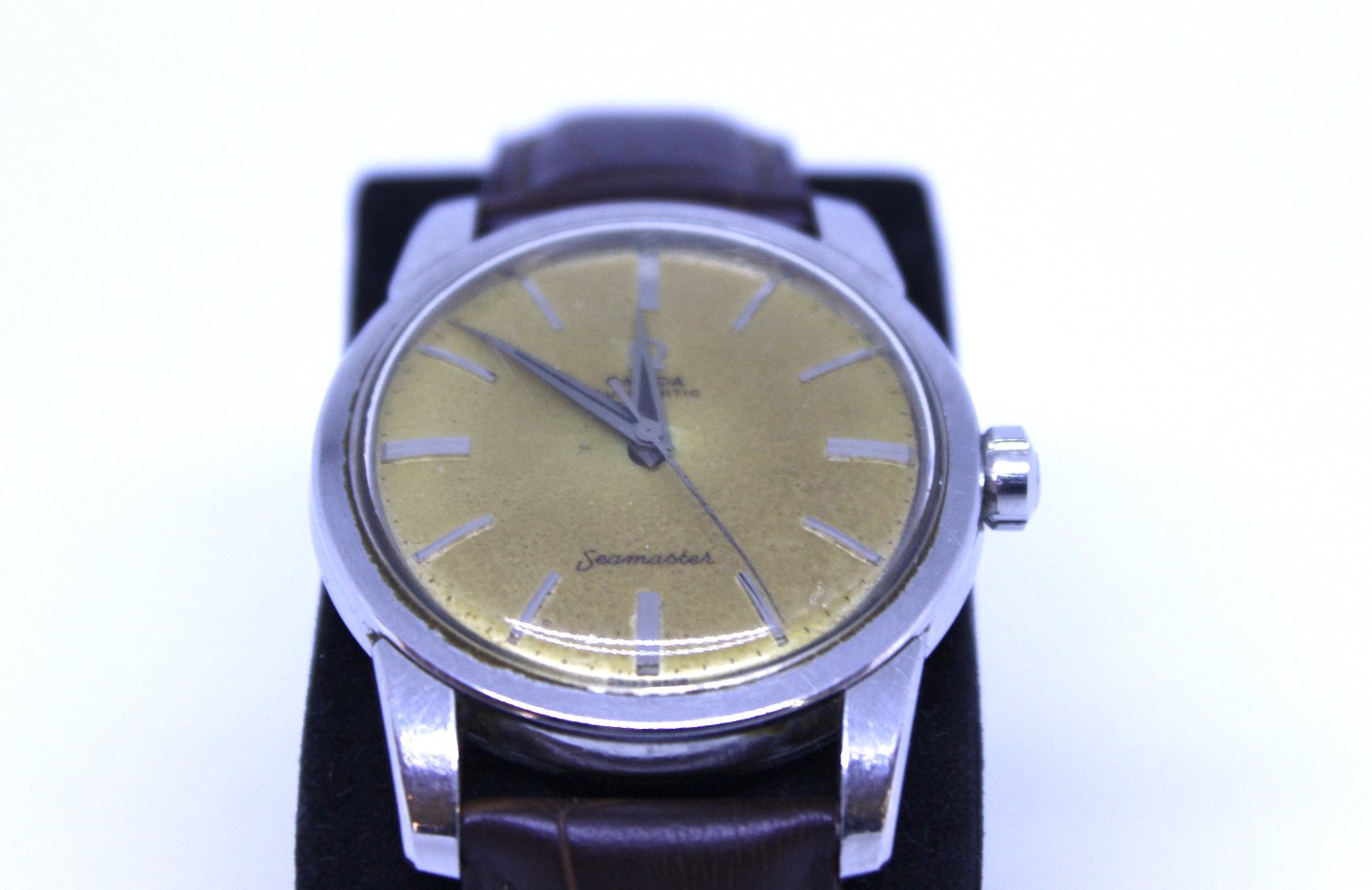 Vintage Omega automatic Seamaster wrist watch with Hirsch leather strap.