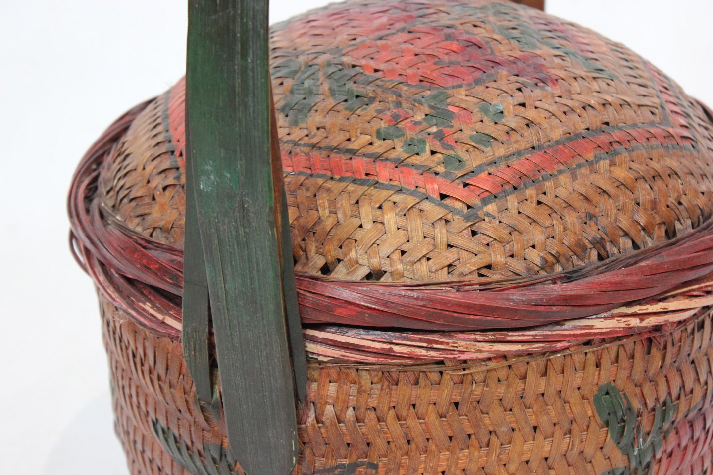 Chinese bread basket with original paint in red colors from around the 1880s.