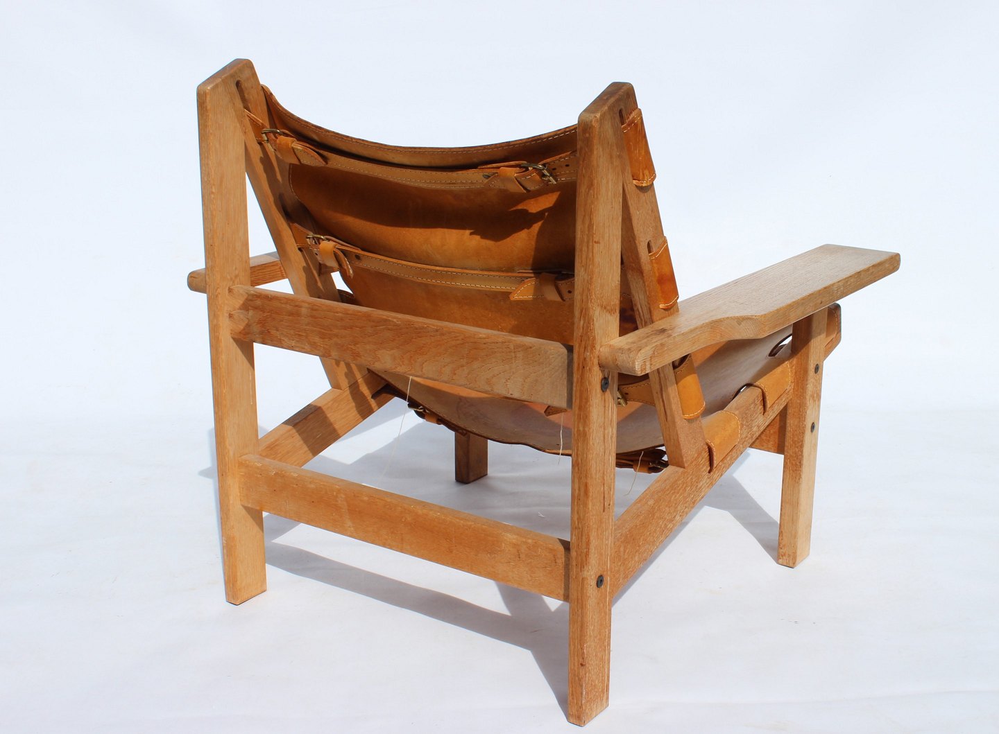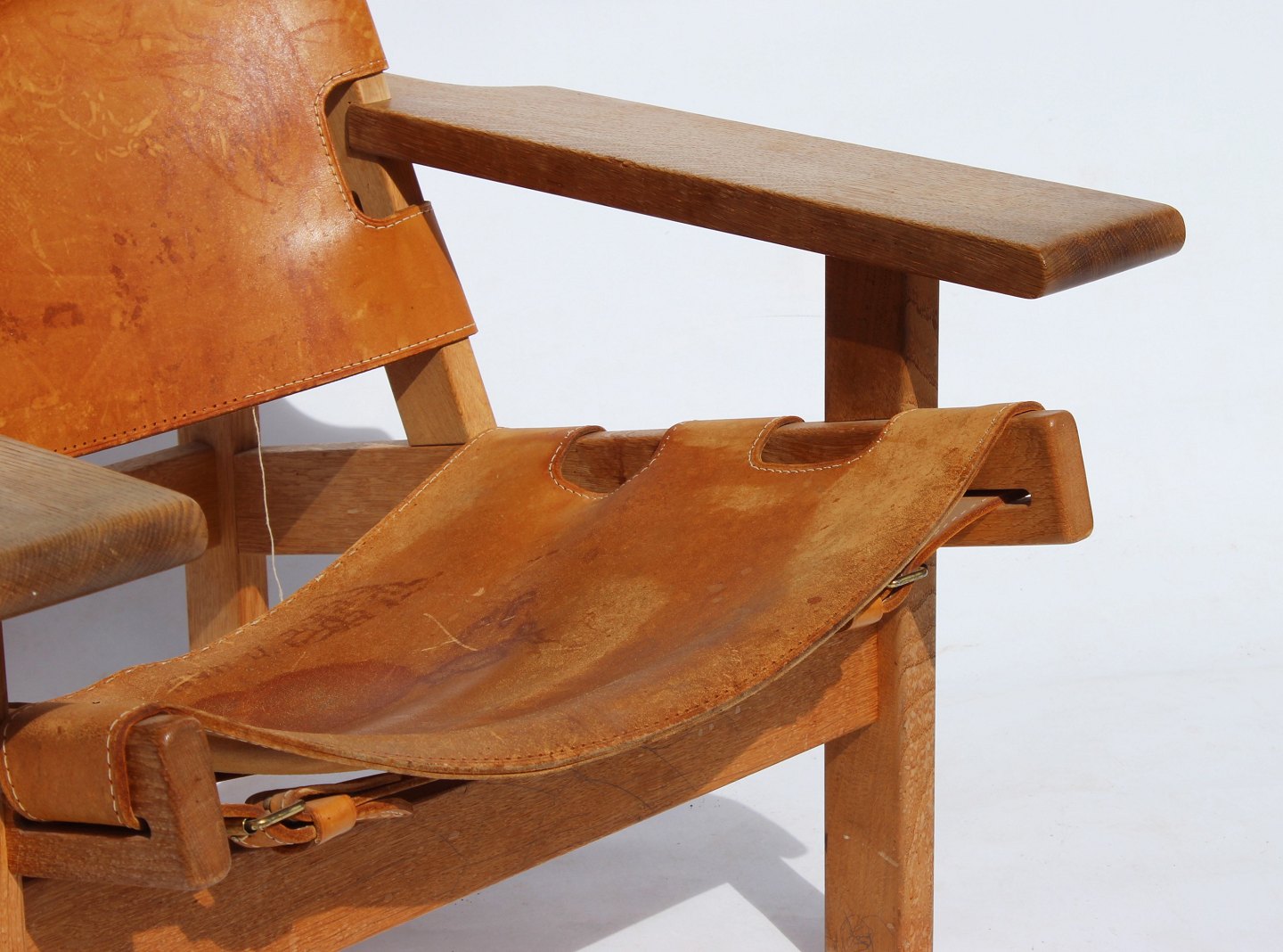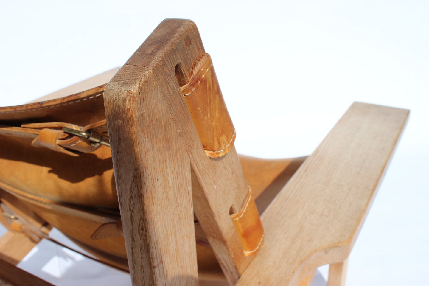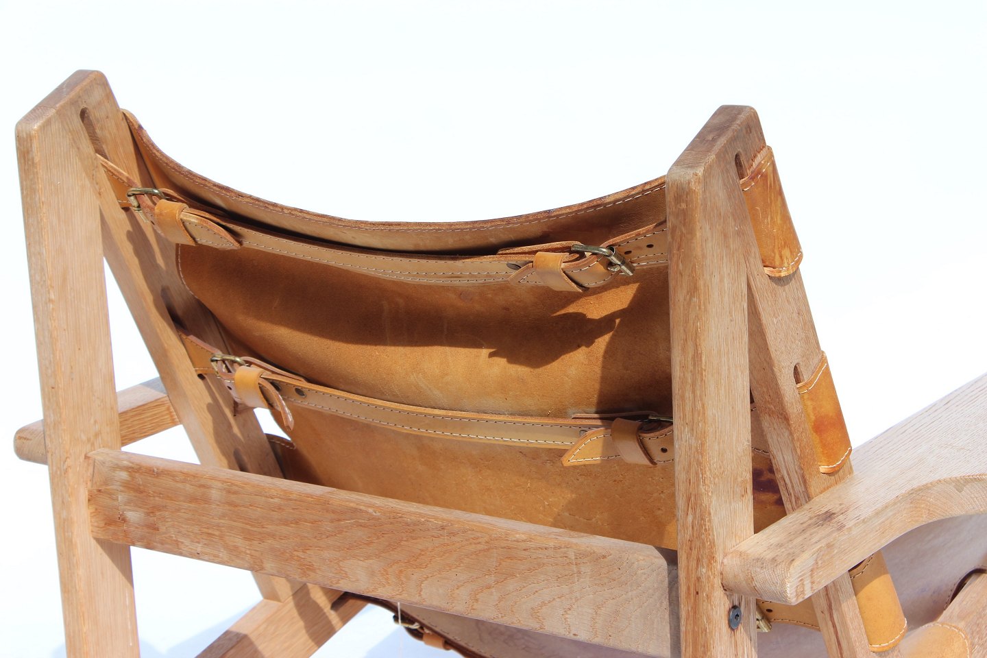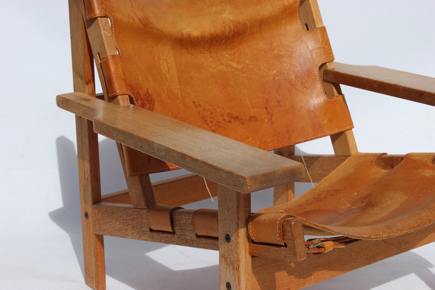 SolgtLænestol, model 168, i egetræ og kernelæder designet af Kurt Østervig. Stolen er i flot brugt stand.