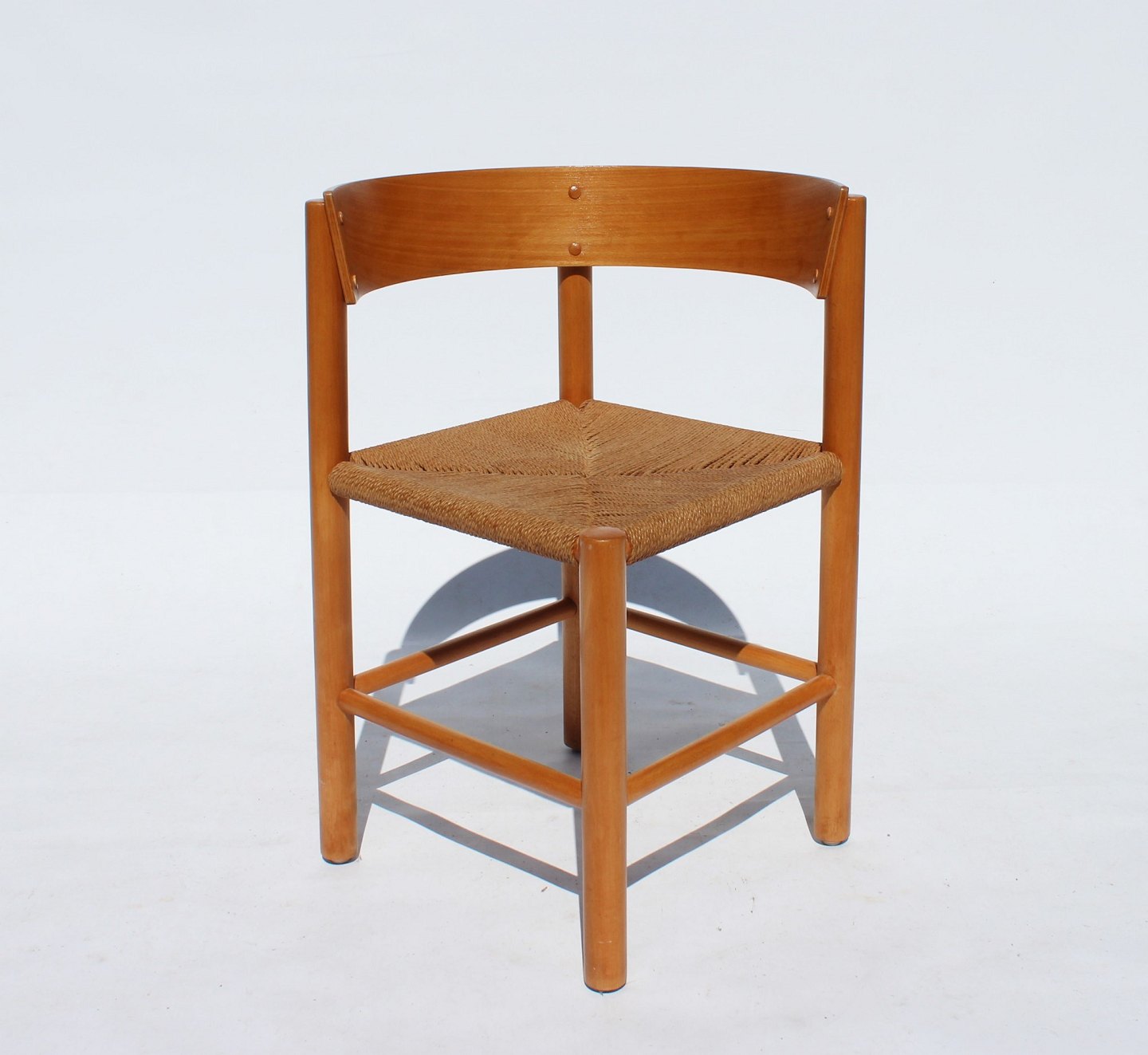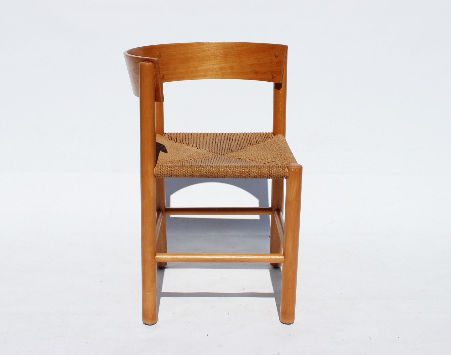 SolgtSæt af fire spisestuestole, FH 4216, i bøgetræ og papirflet designet af Mogens Lassen og fremstillet af Fritz Hansen fra 1960erne. Stolene er i flot stand og vi har det tilhørende bord på lager.