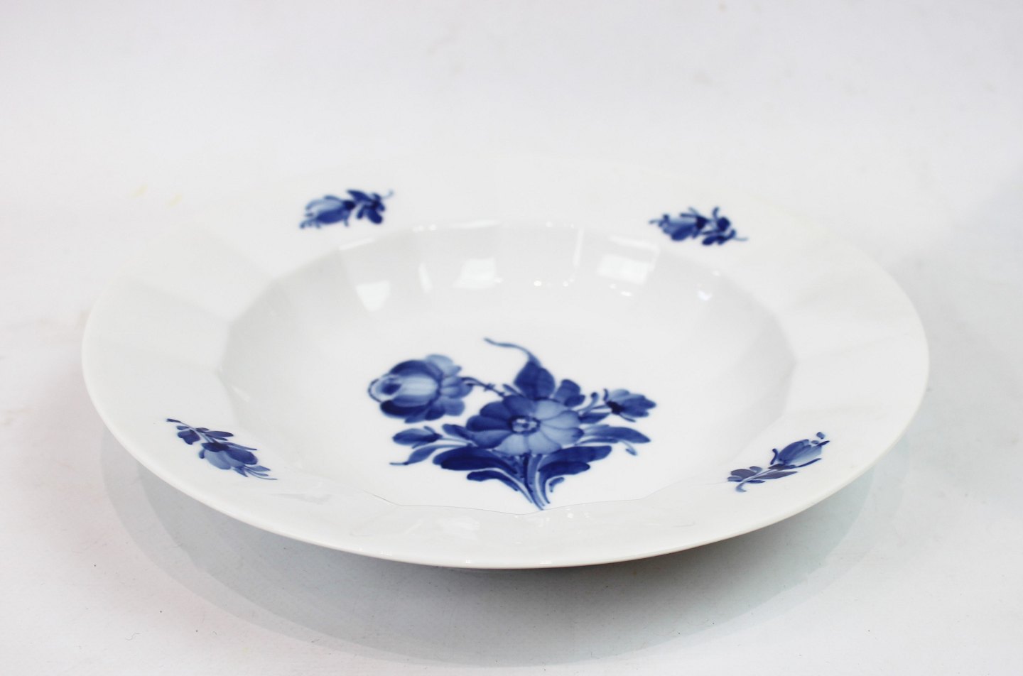 Dyb tallerken, nr.: 8546, i Blå Blomst Kantet af Royal Copenhagen. Spørg for antal på lager.