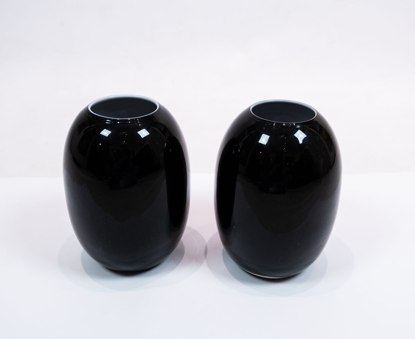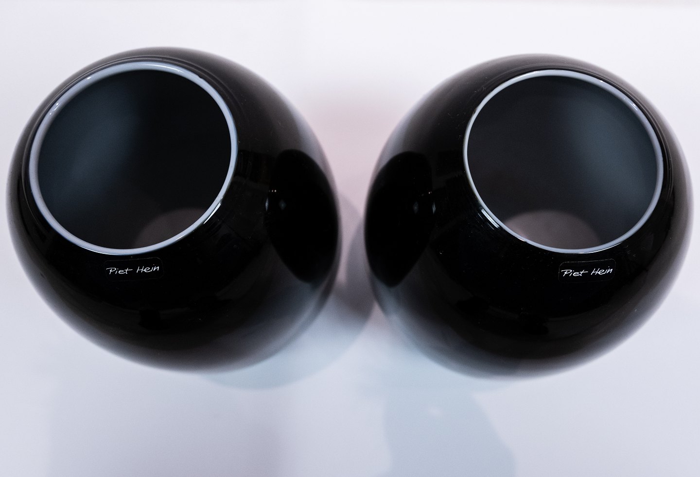 Et par Super vaser i sort opal glas af Piet Hein. Vaserne er i flot brugt stand.