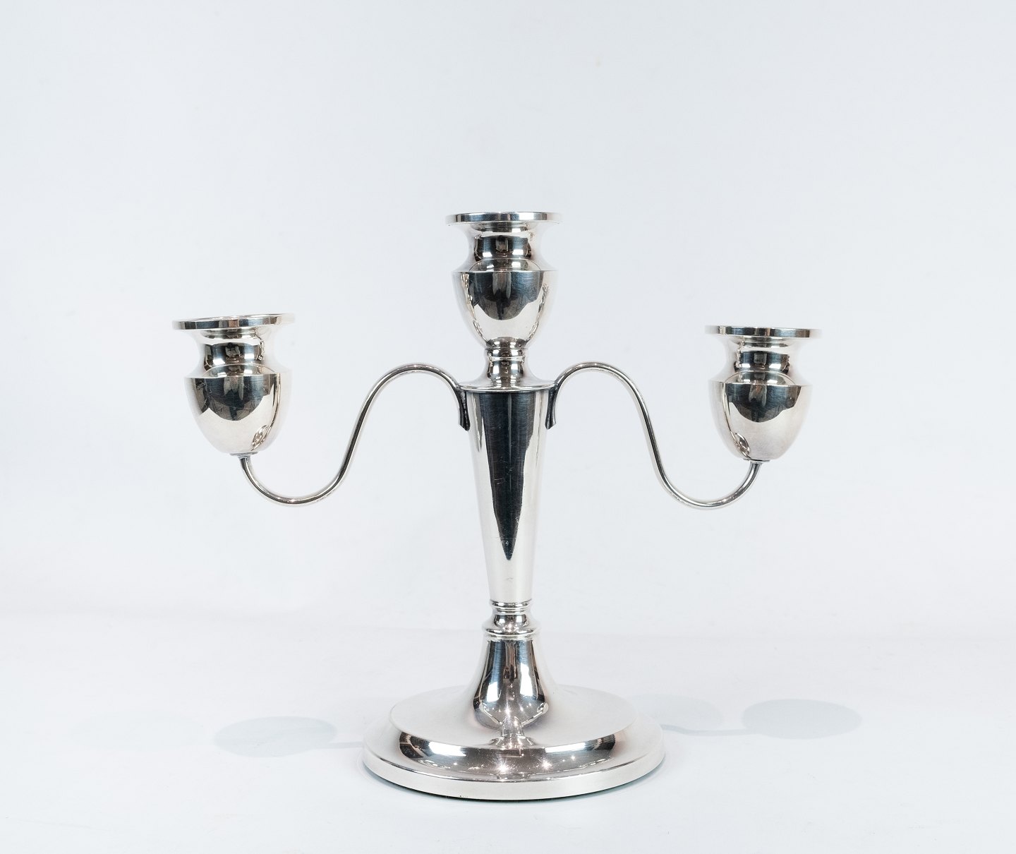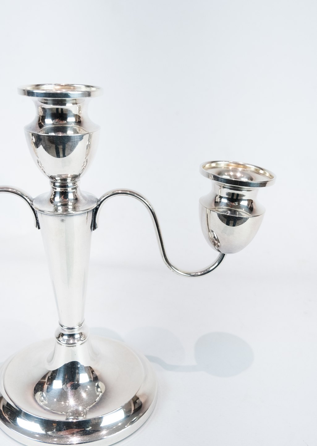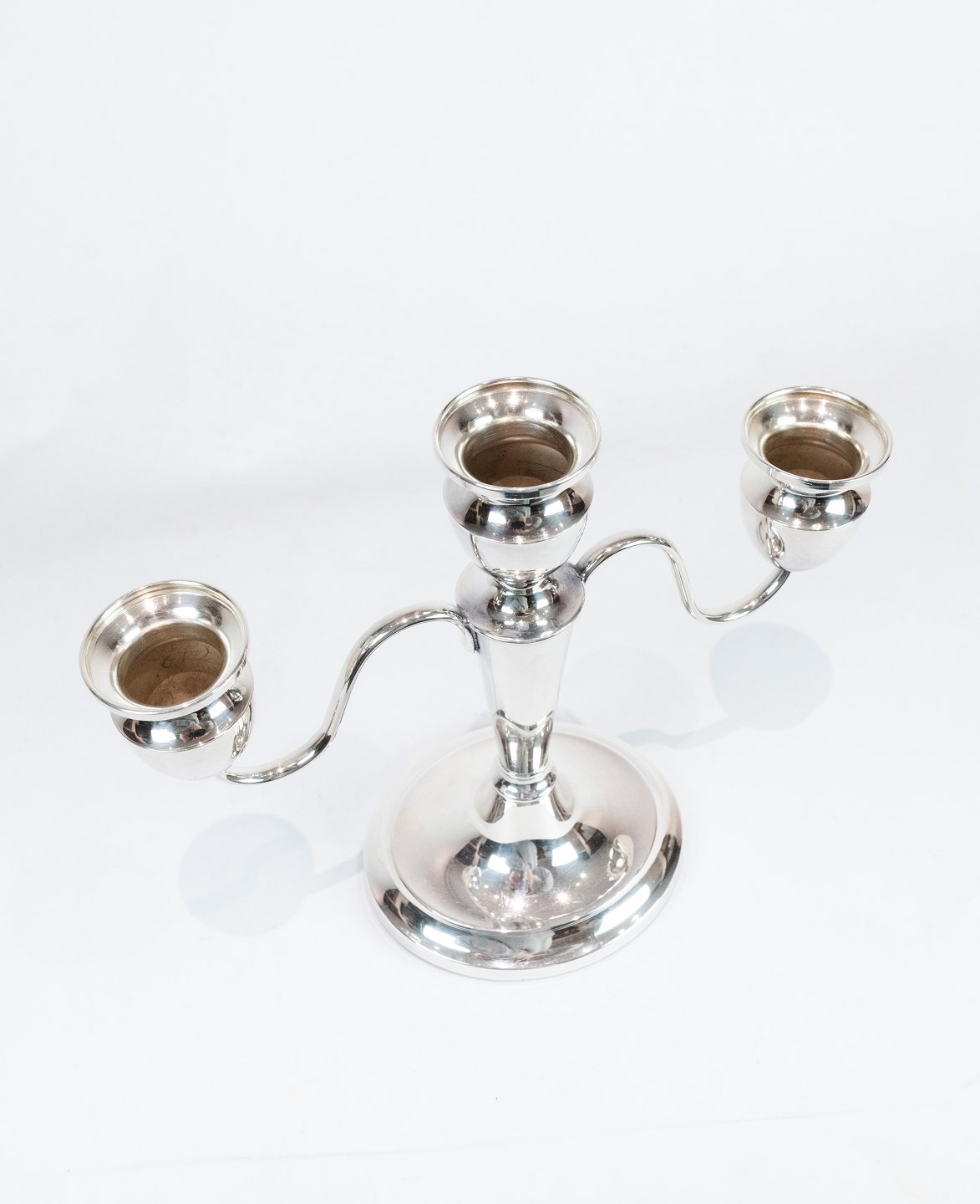 Et par tre armede lysestager af 830 sølv og signeret E.T.J. Begge er i flot stand.