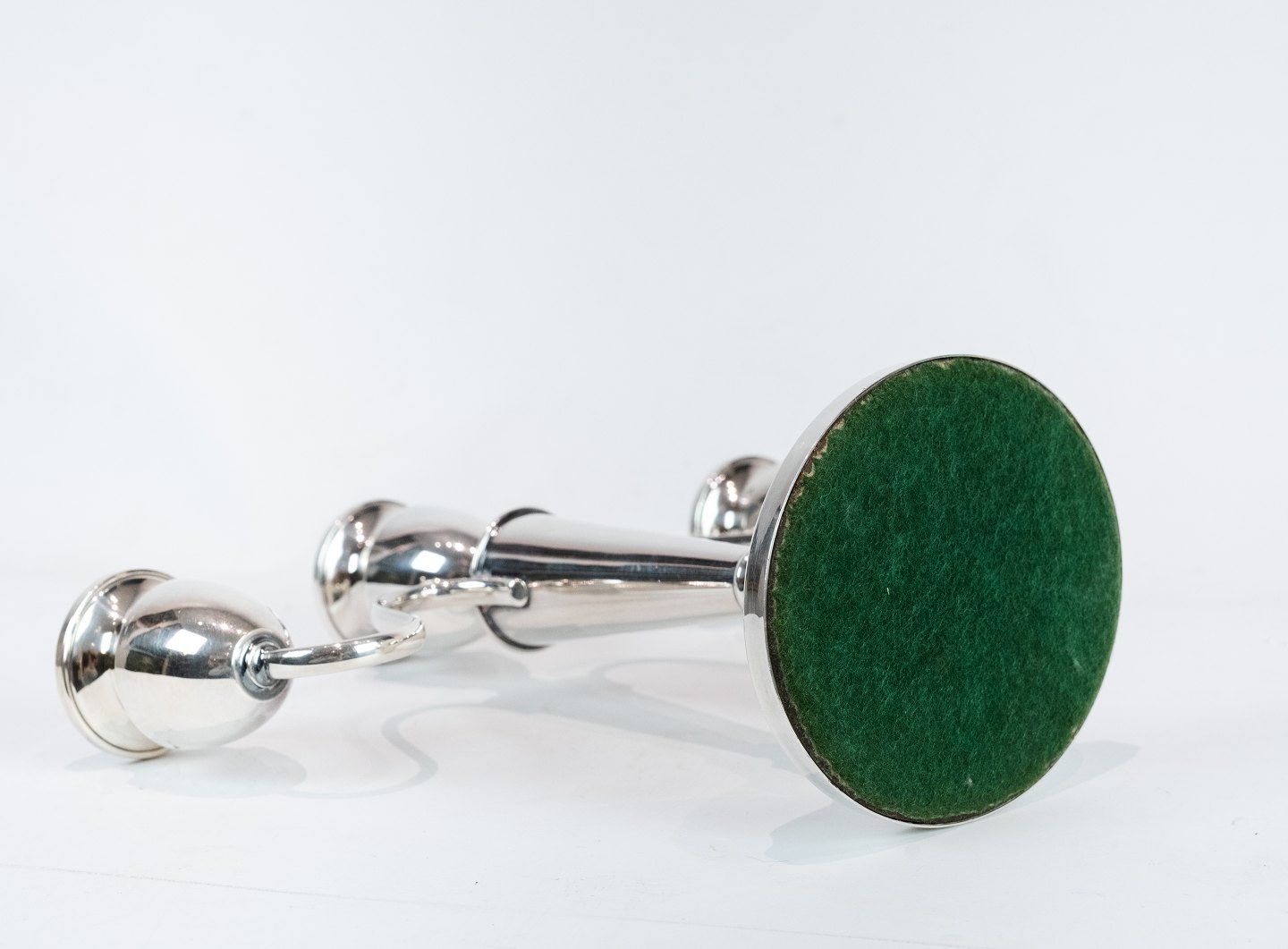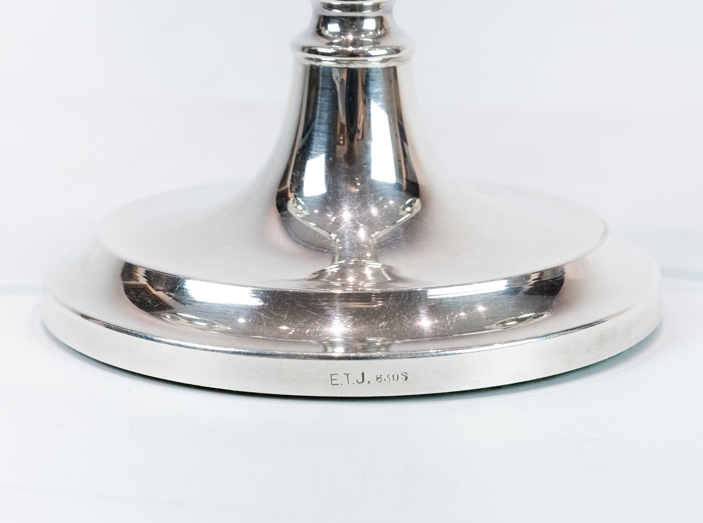 Et par tre armede lysestager af 830 sølv og signeret E.T.J.