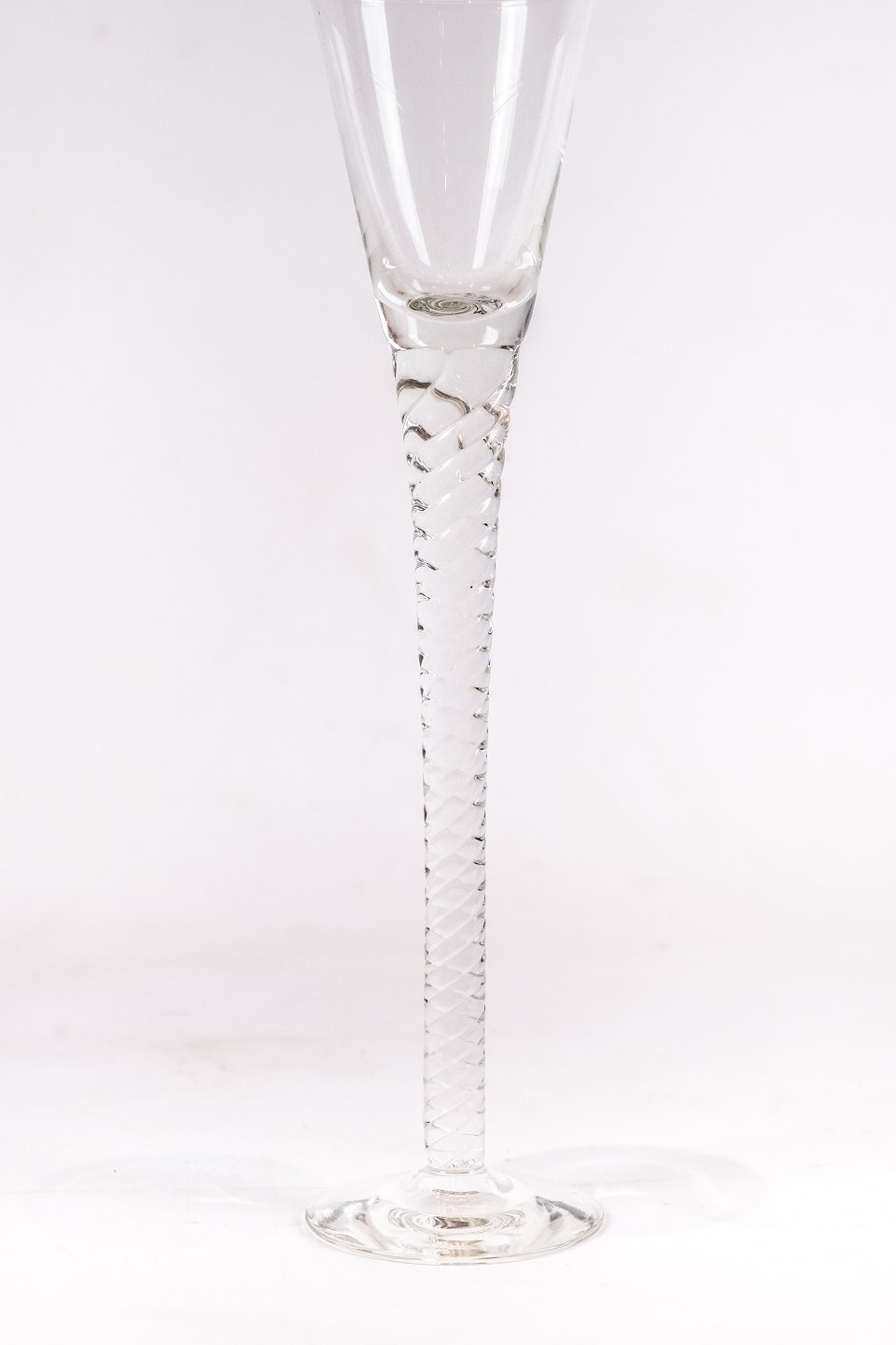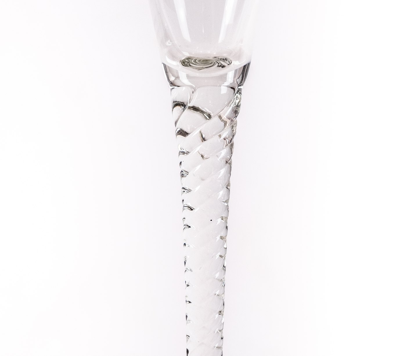 SolgtHøje snapseglas med snoet stilk, i flot stand. Spørg for antal på lager.