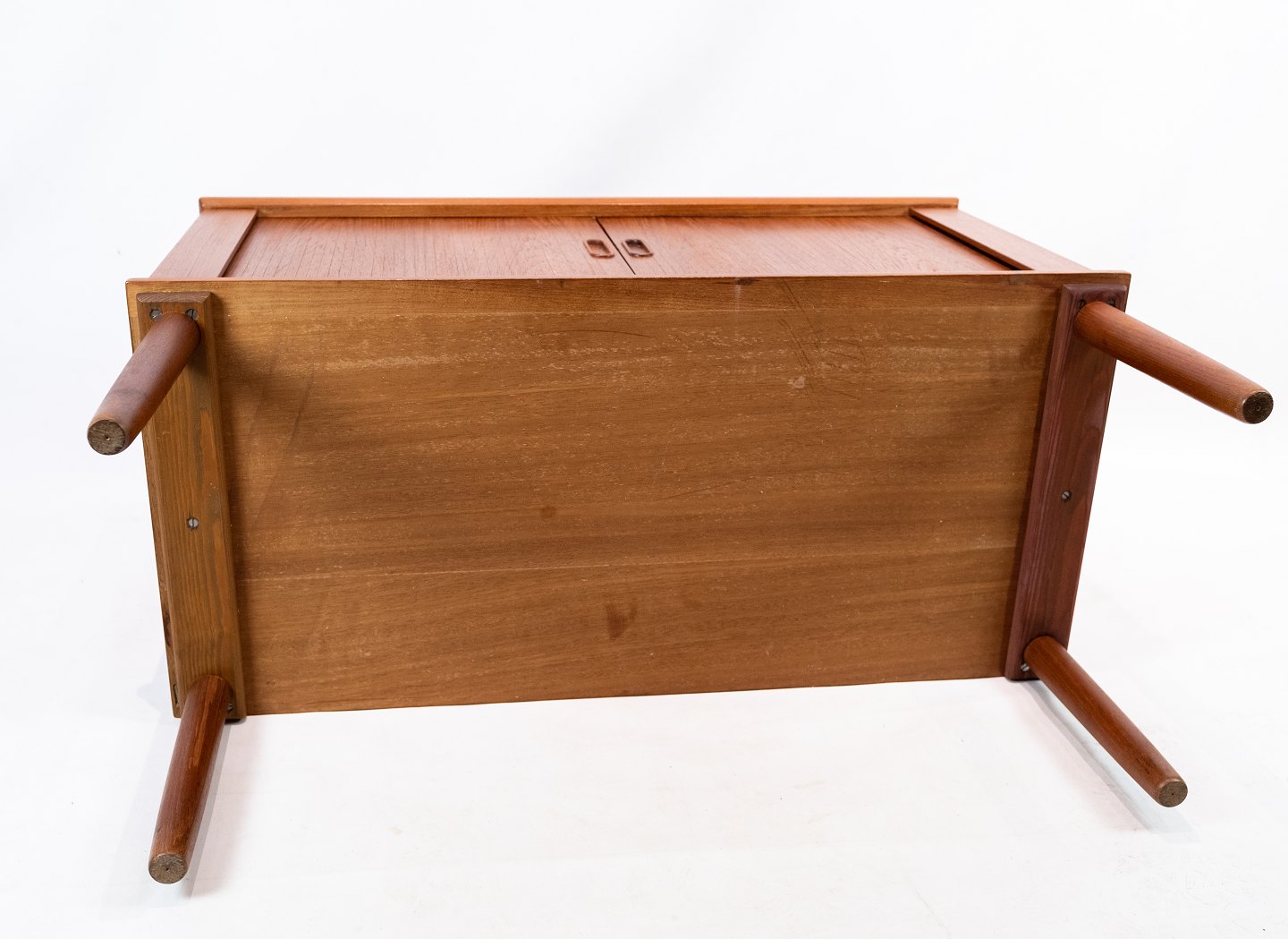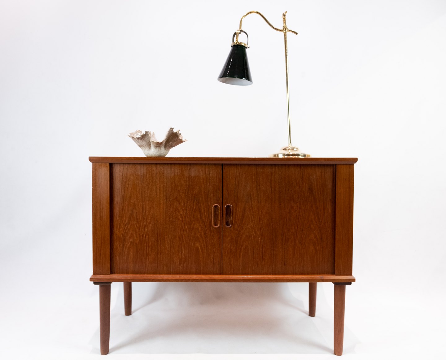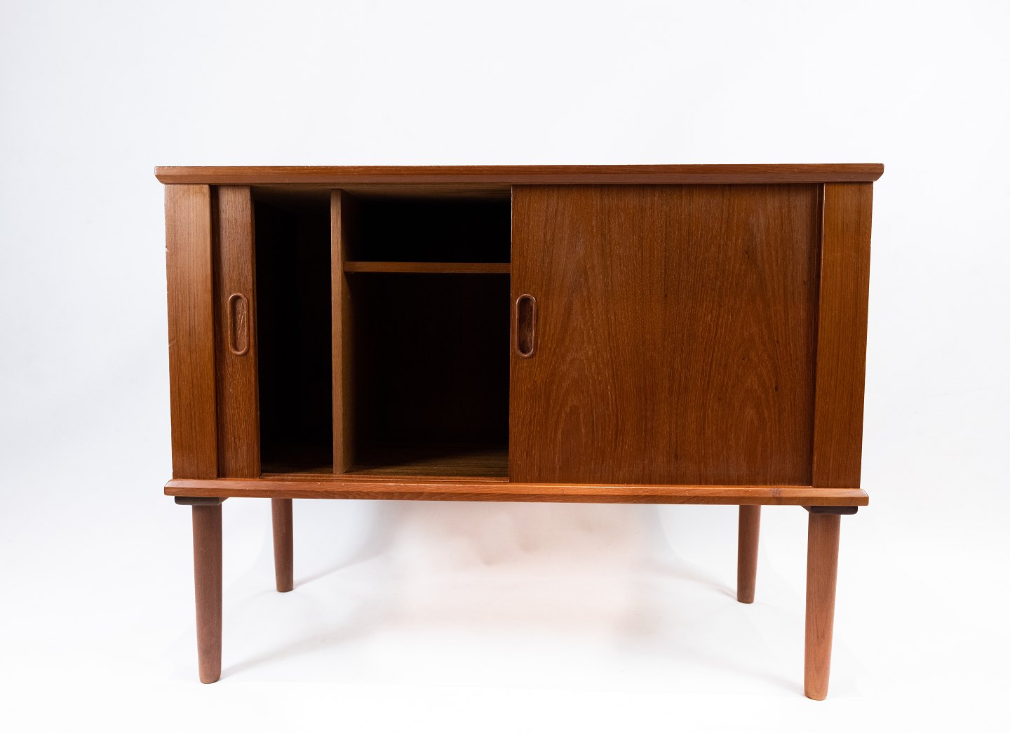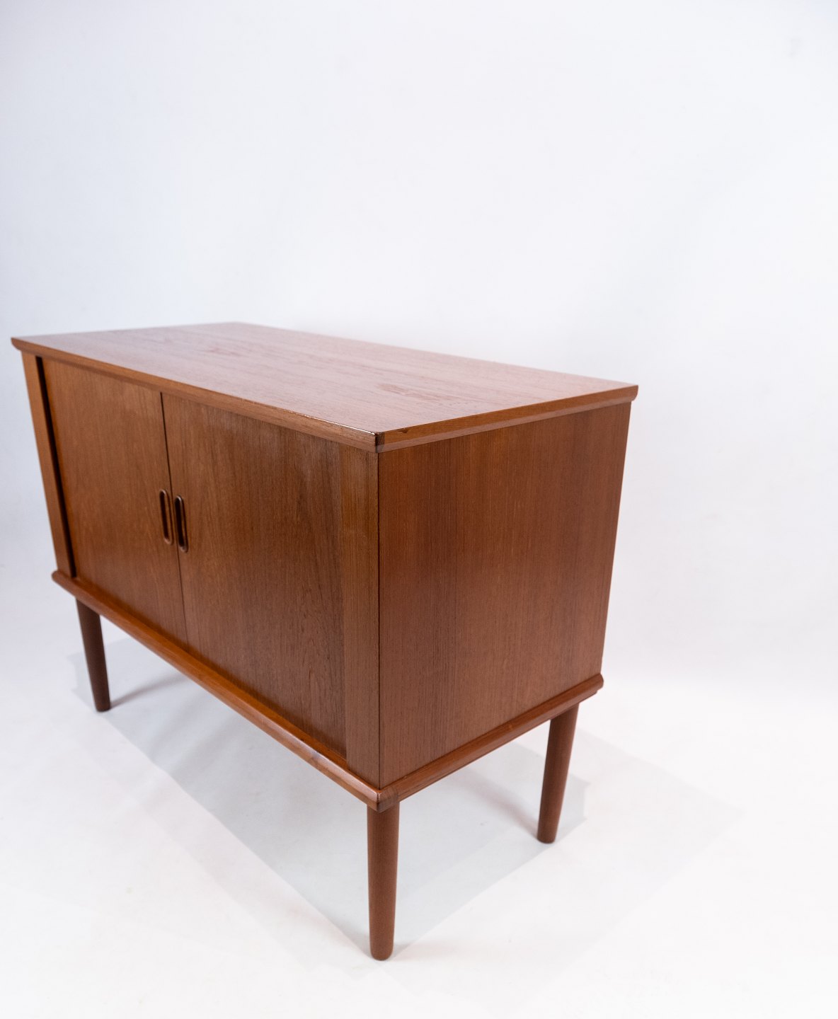 SoldSmaller sideboard in teak with sliding doors of dansih design from the 1960s. The sideboard is in great vintage condition.