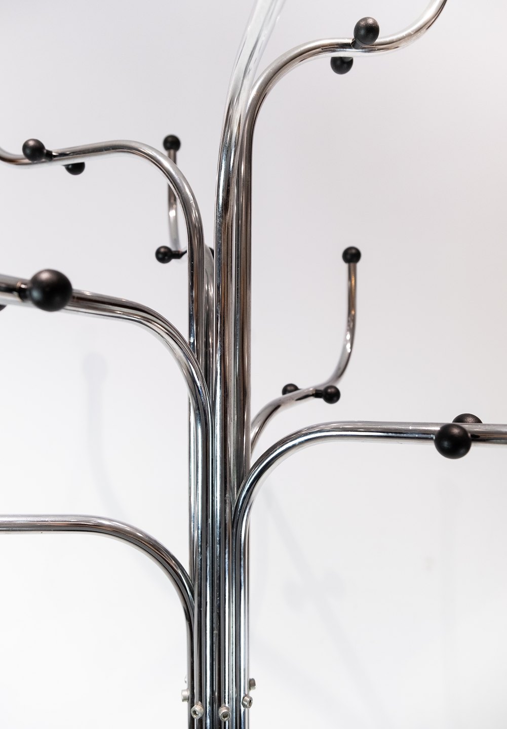 Stumtjener i rustfrit stål med ni arme designet af Sidse Werner og fremstillet af Fritz Hansen i 1970erne.
