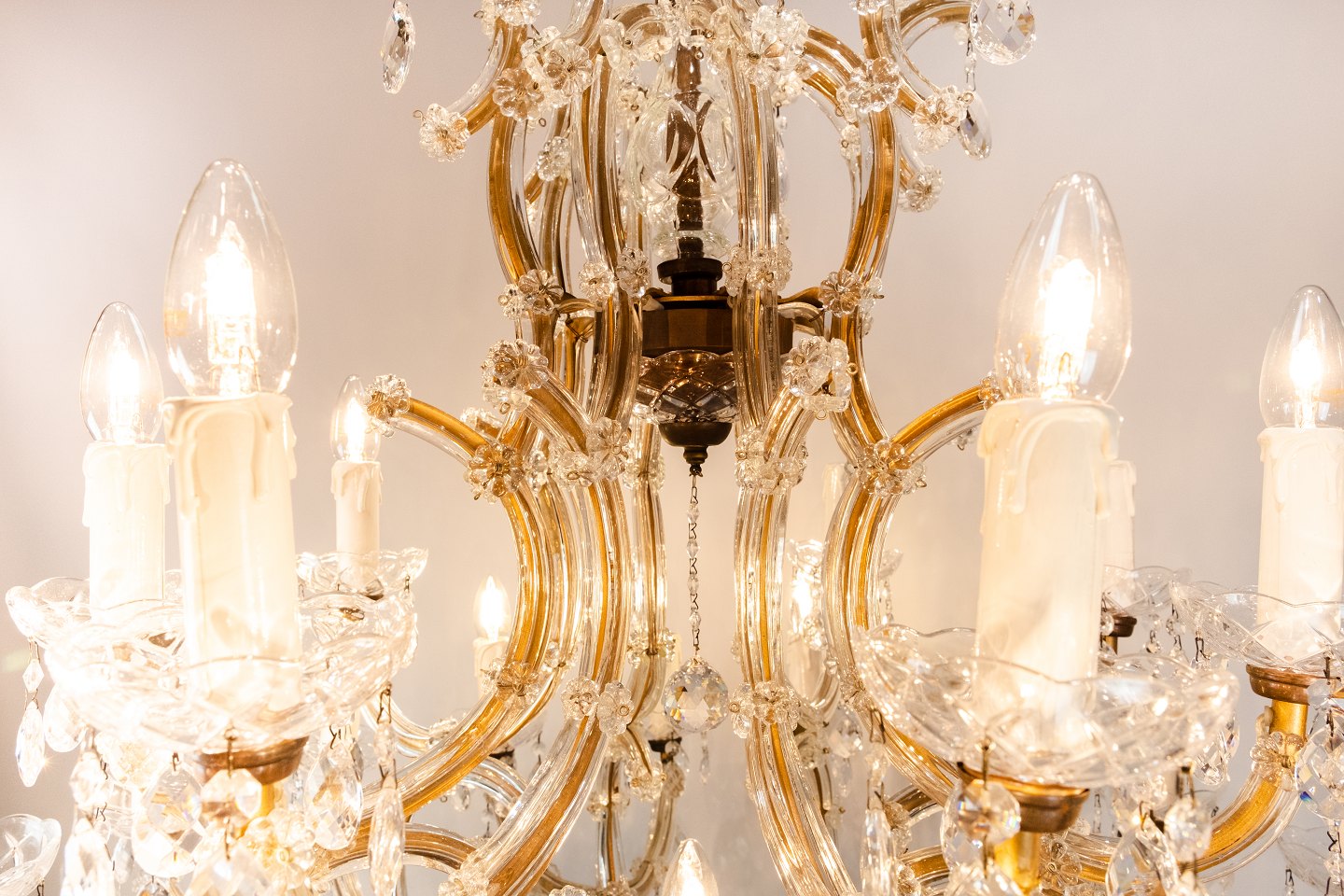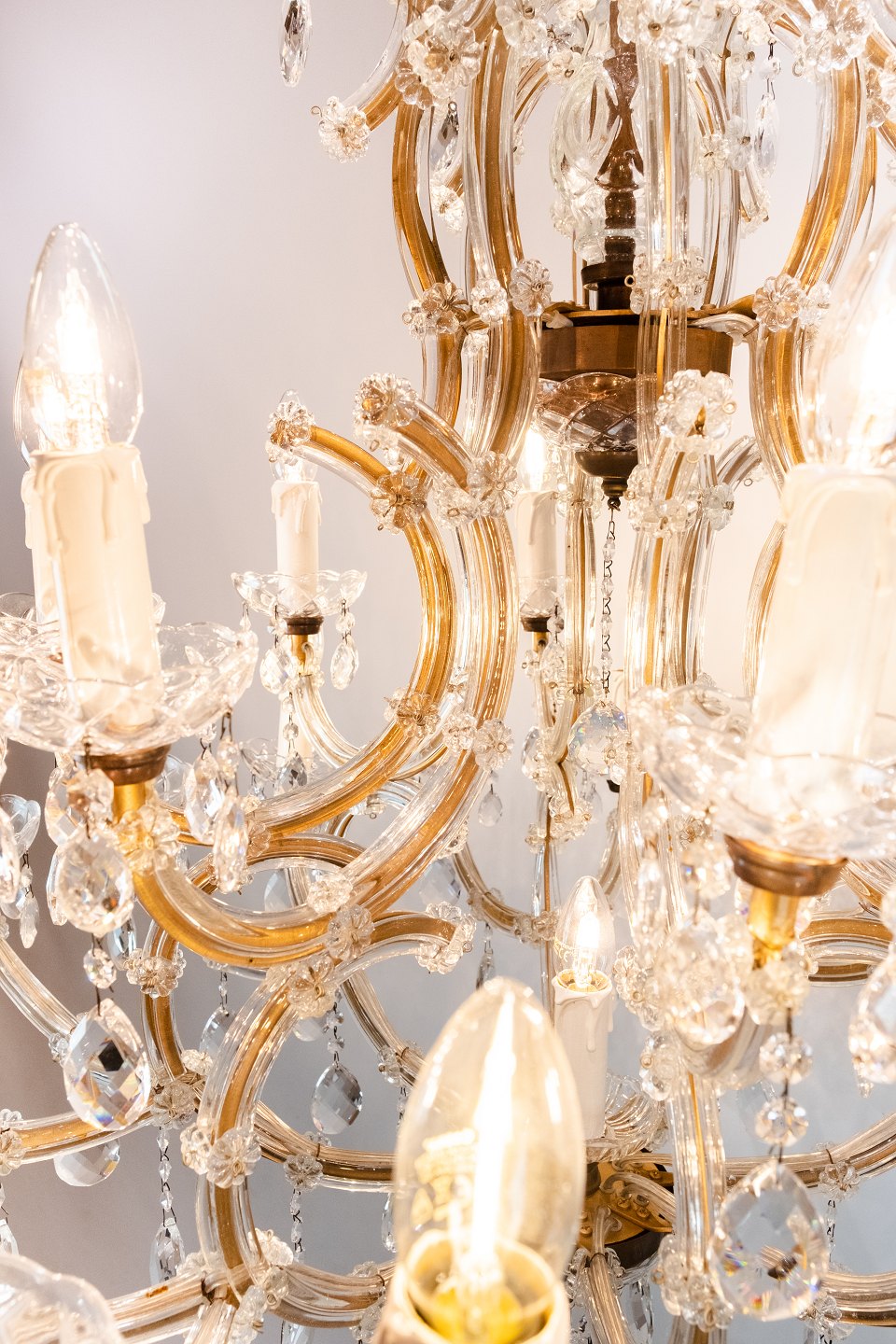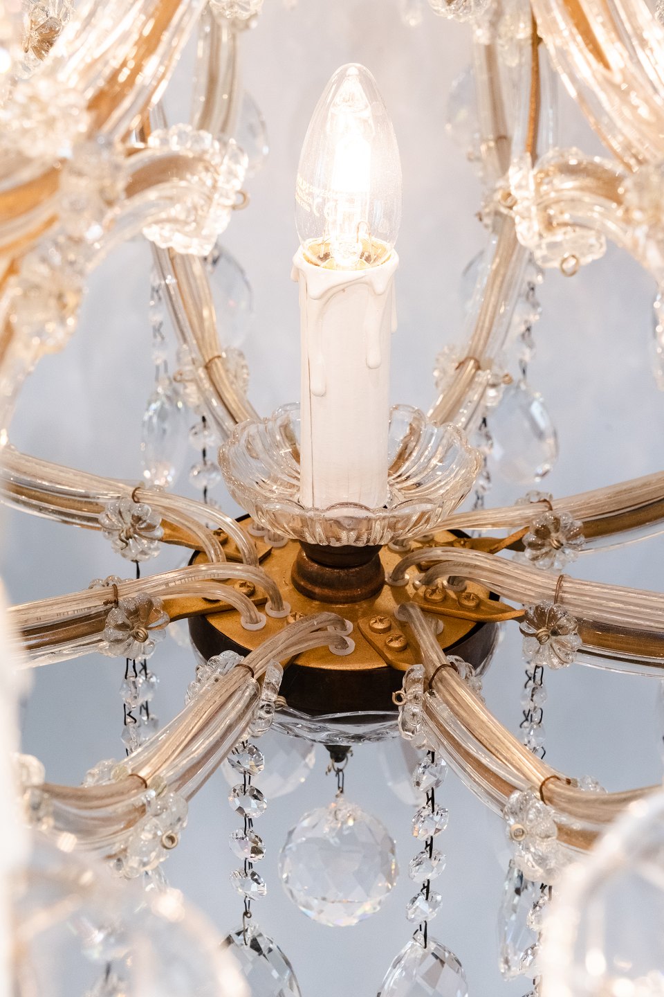 SolgtStor antik fransk prismekrone af messing fra omkring 1920erne. Kronen er i flot antik stand.