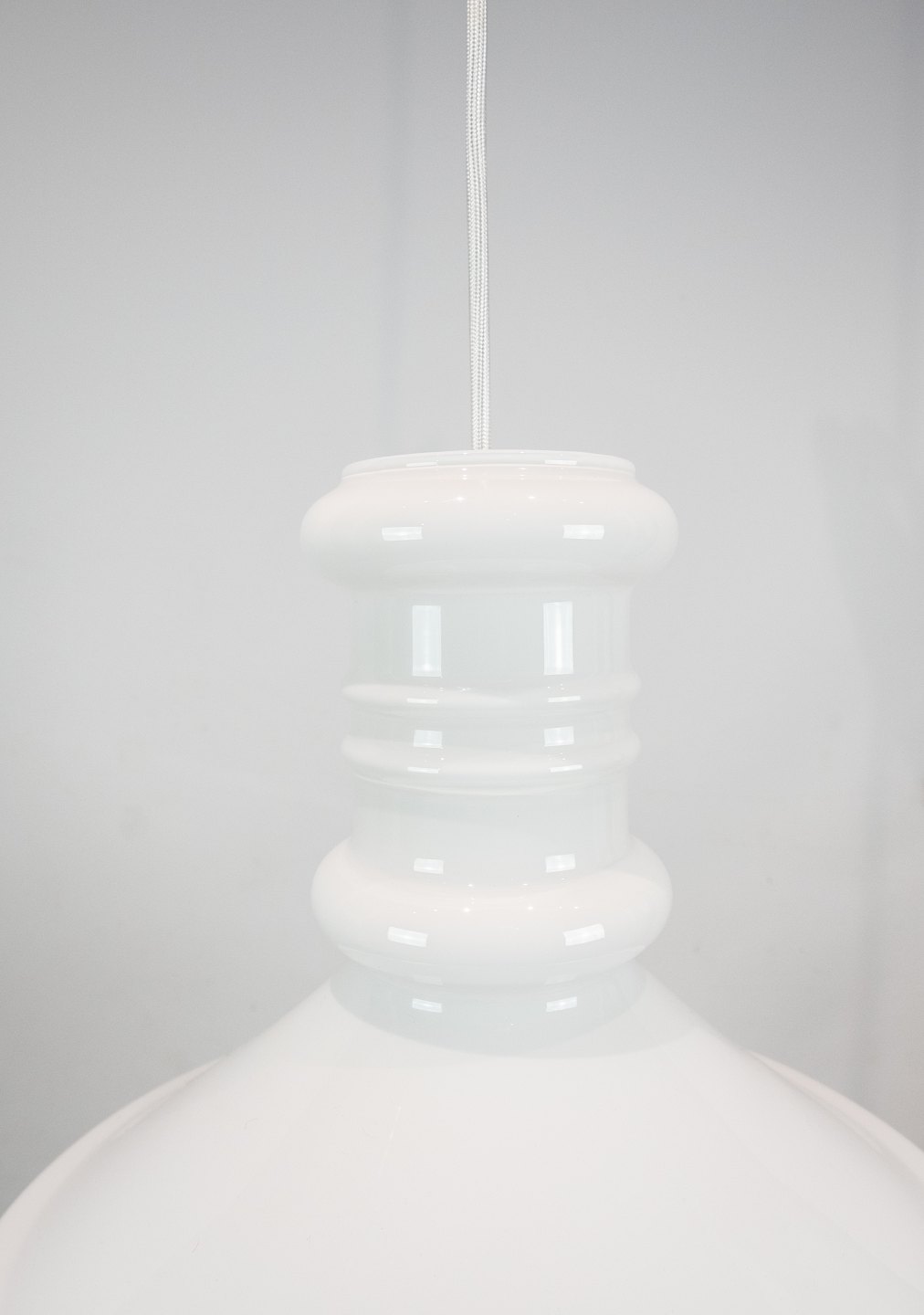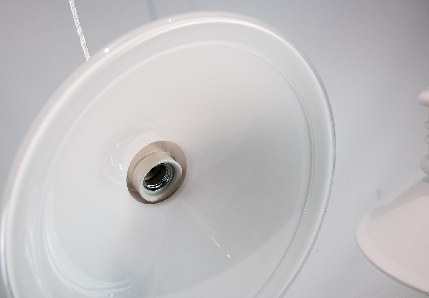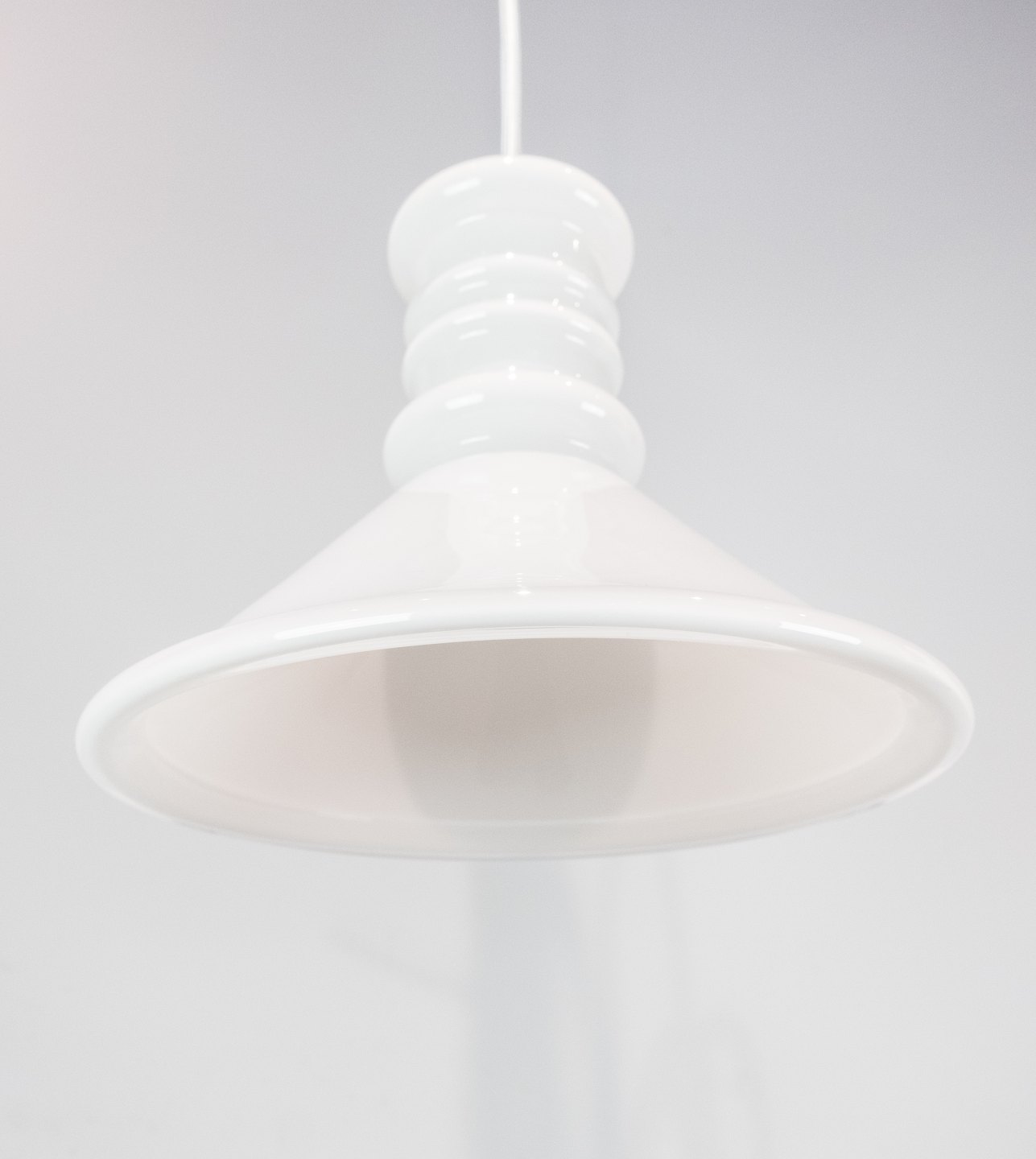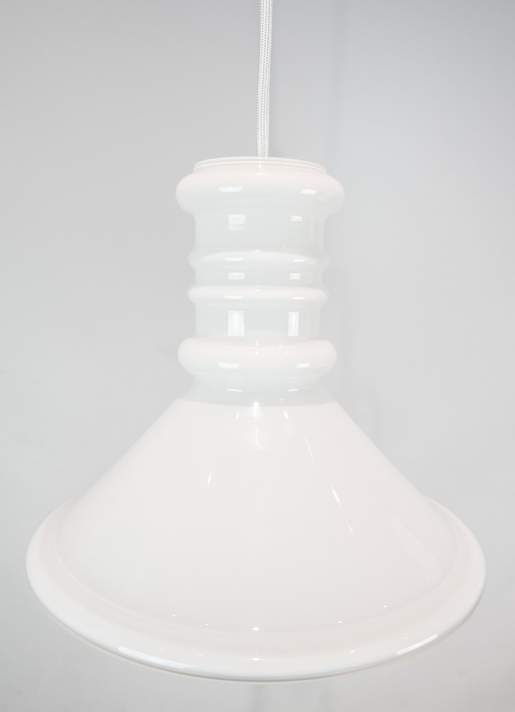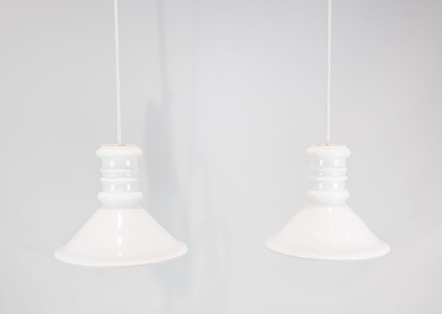 SolgtEt sæt pendler i hvidt opalglas af Holmegaard. Lamperne er i flor brugt stand.