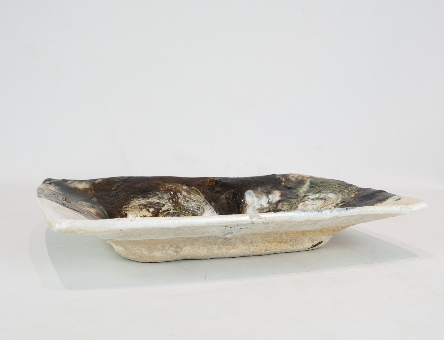 Keramik fad i mørke og lyse farver af Jeppe Hagedorn Olsen. Fadet er i flot brugt stand.