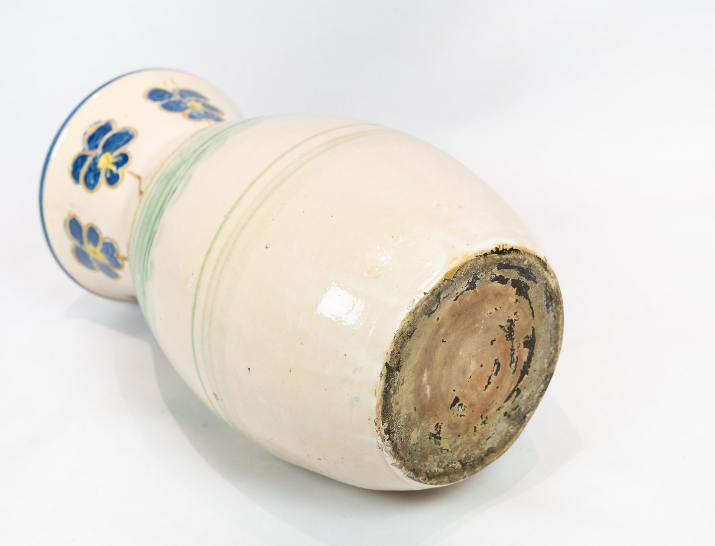 SolgtKeramik gulvvase i lys farve dekoreret med blå blomster. Vasen er i flot brugt stand.