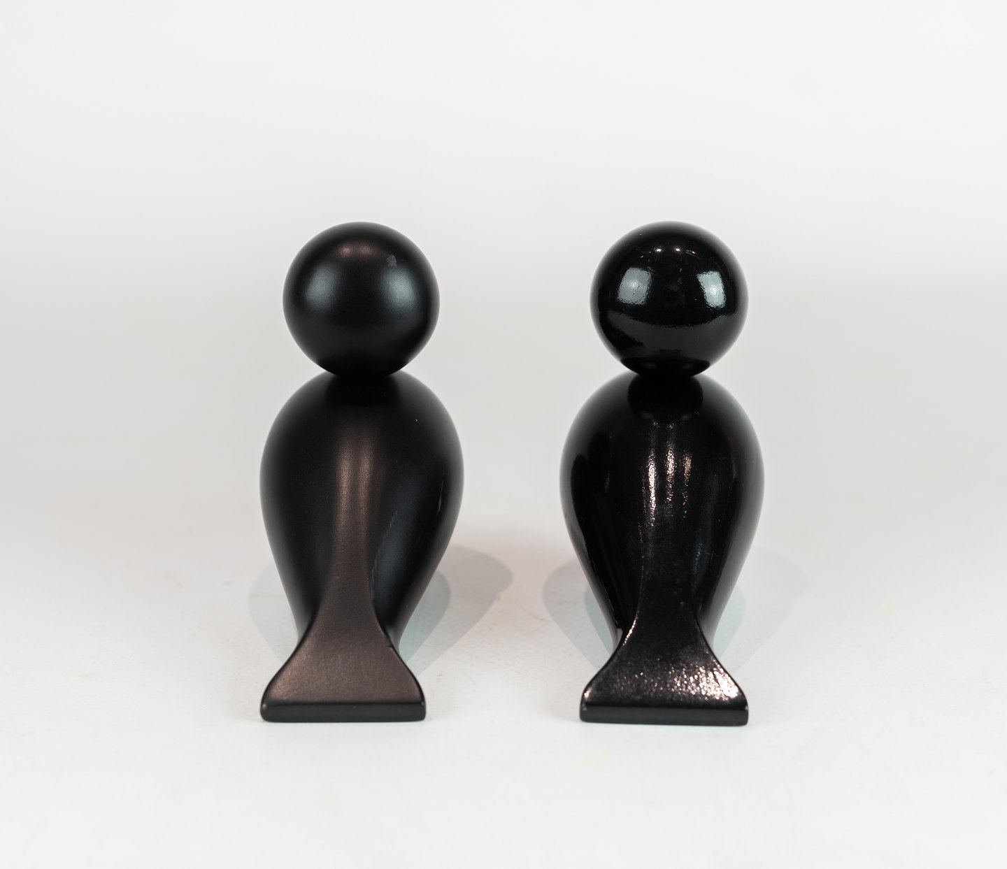 A pair of Kay Bojesen turtle doves in black painted wood.
