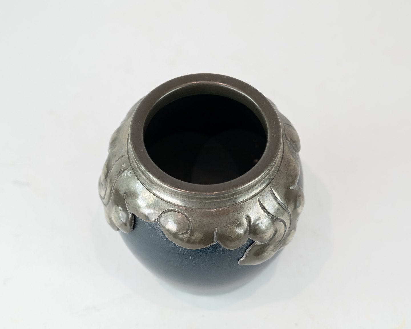 Ceramic vase in dark blue decorated with metal edge by Ibsen Enke.