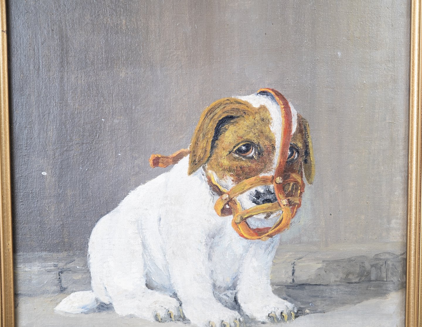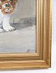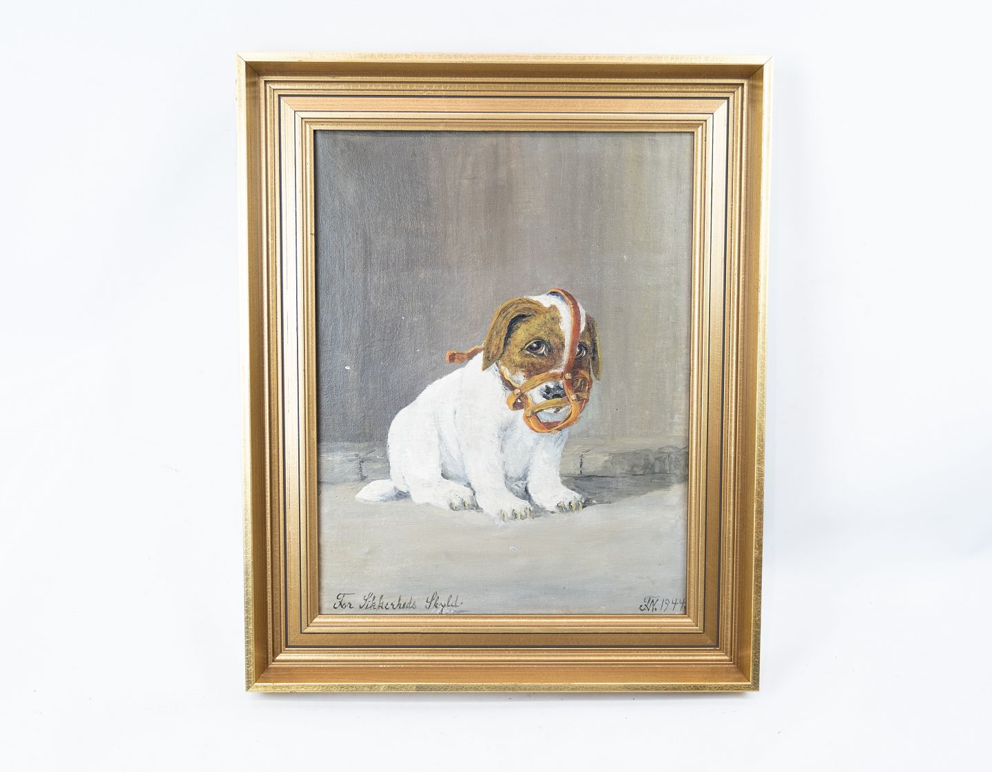 Oil painting with motif of puppy signed TN from 1944.