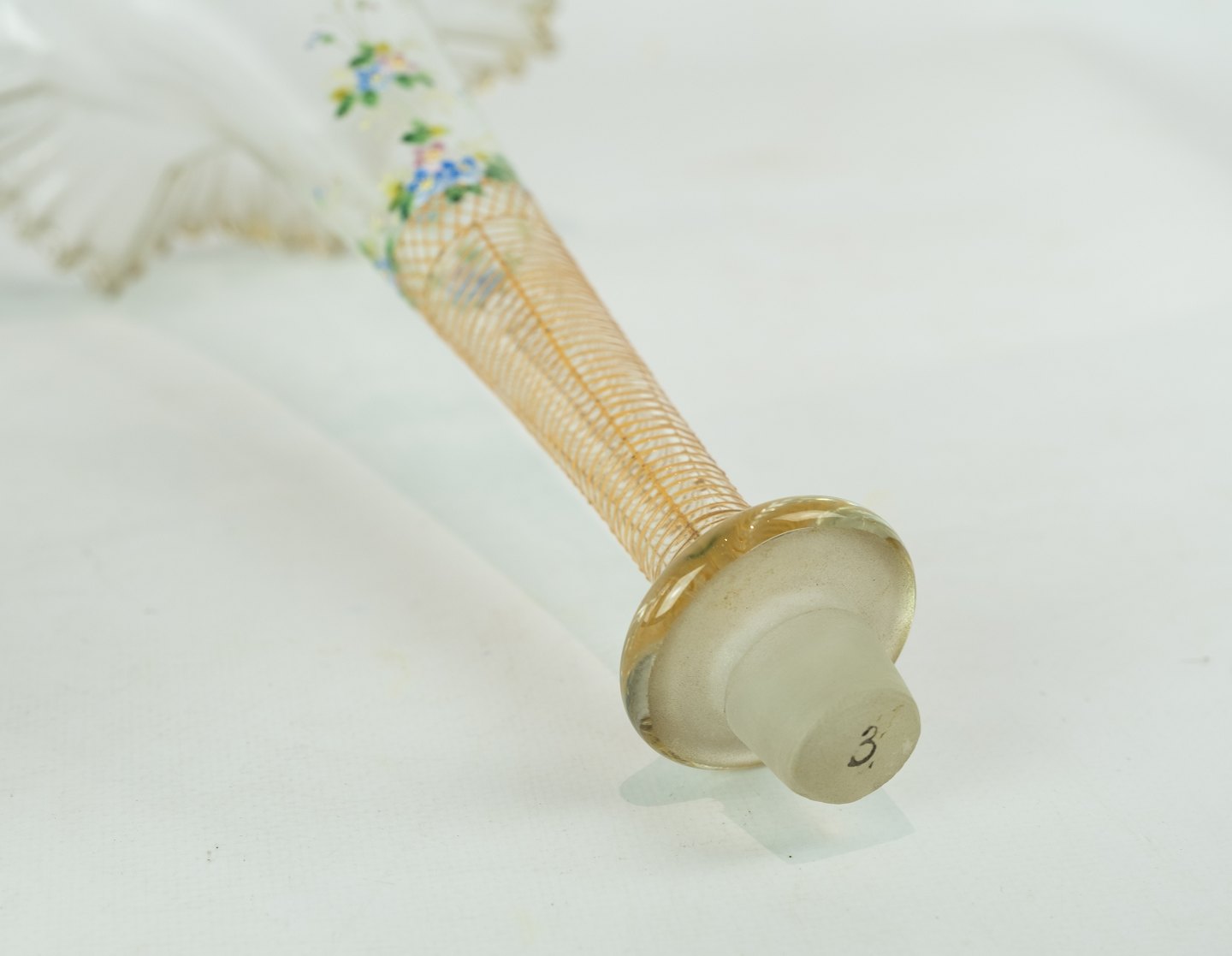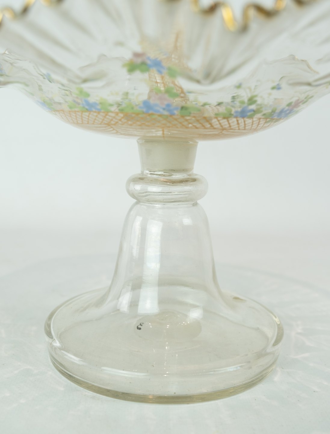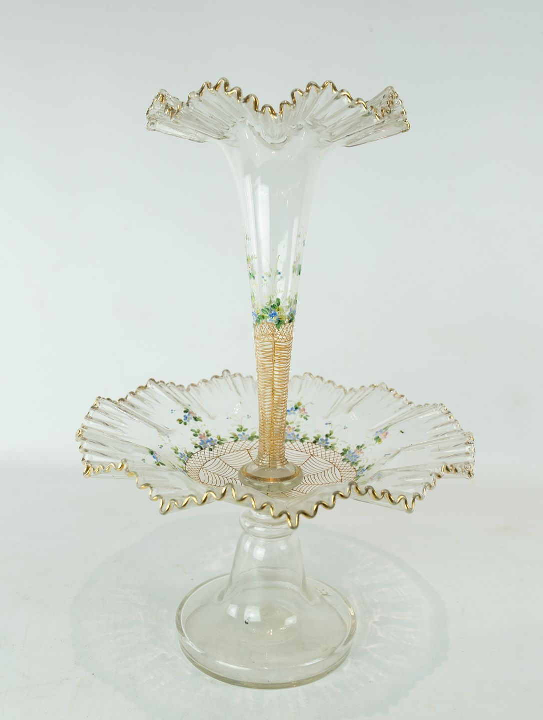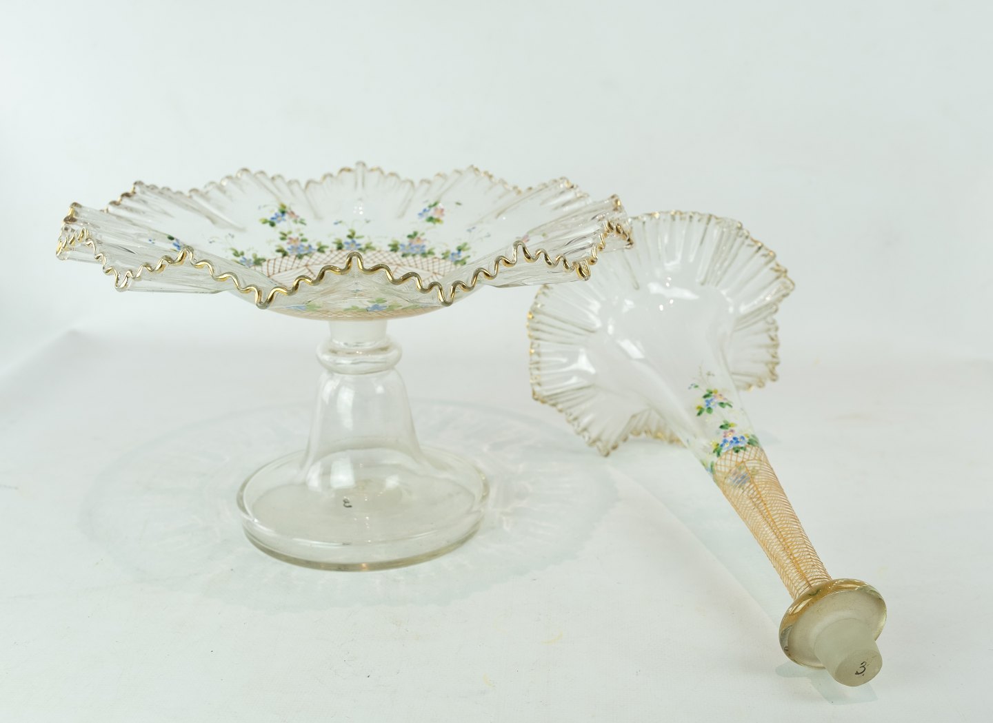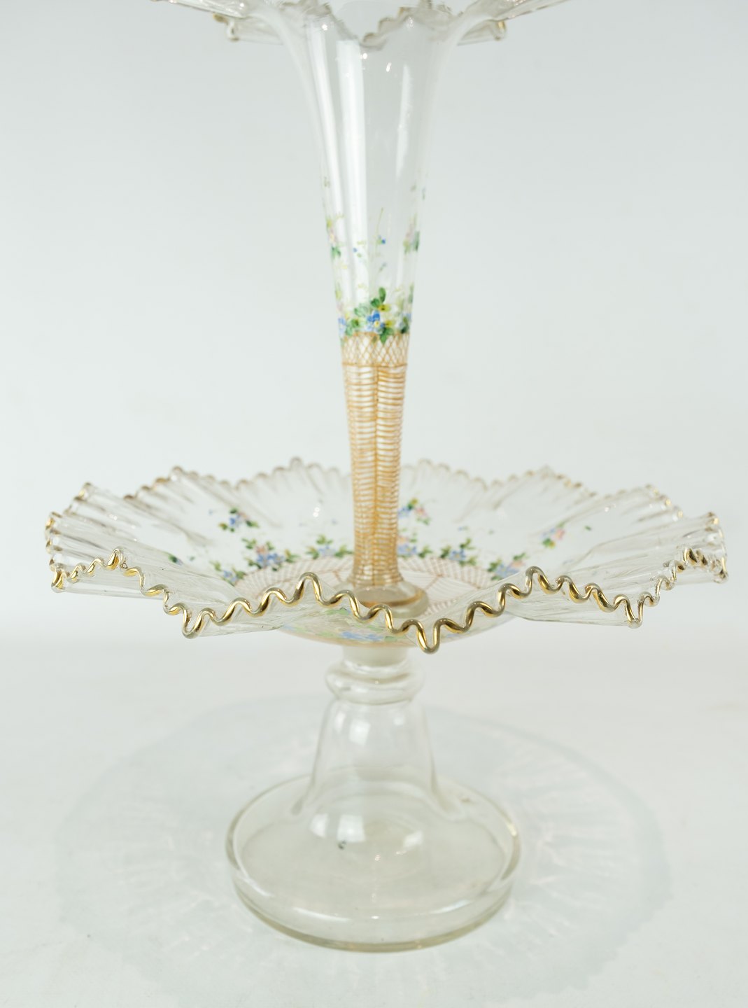 Large glass center piece, decorated with coloured glass from Funen's Glassworks around the 1860s.
