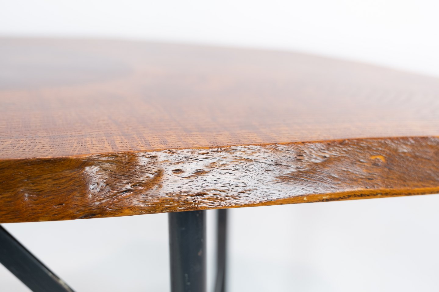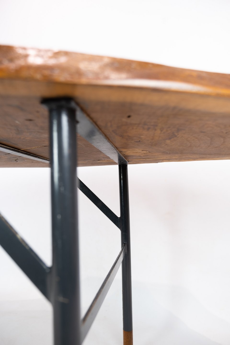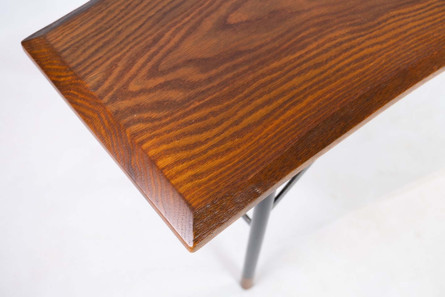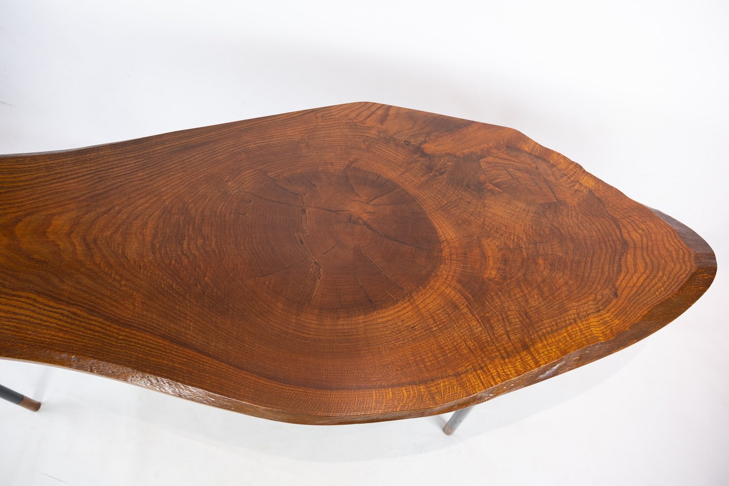 SoldCoffee table of massive ash with legs of metal and teak of danish design from the 1980s. The table is in great vintage condition.
