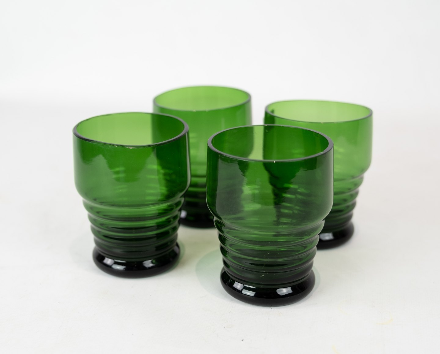 Sæt af fire mørkegrønne vanglas, i flot brugt stand fra 1930erne.