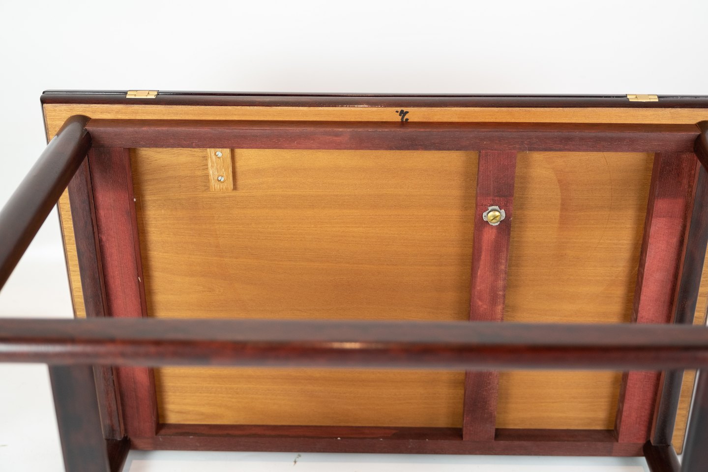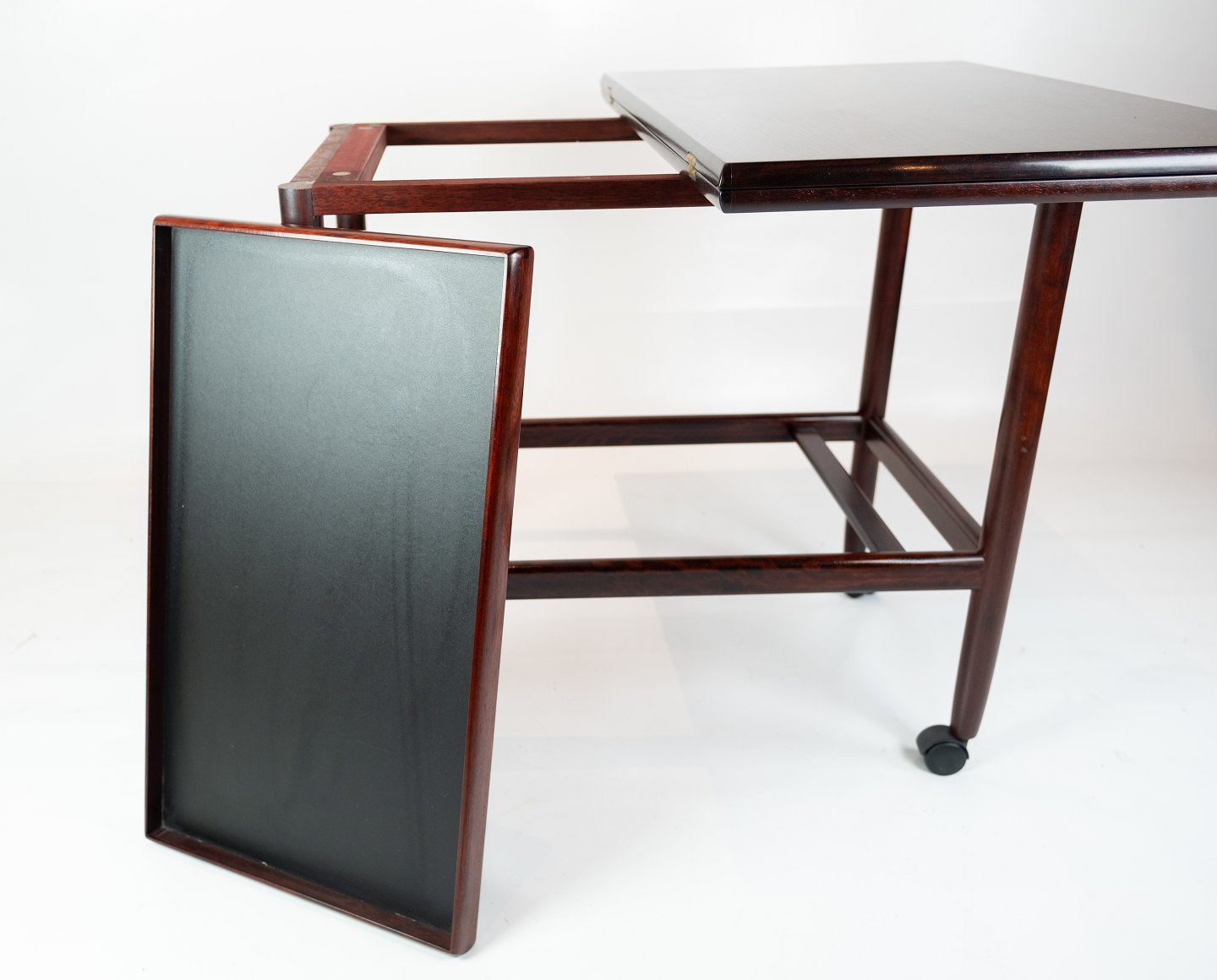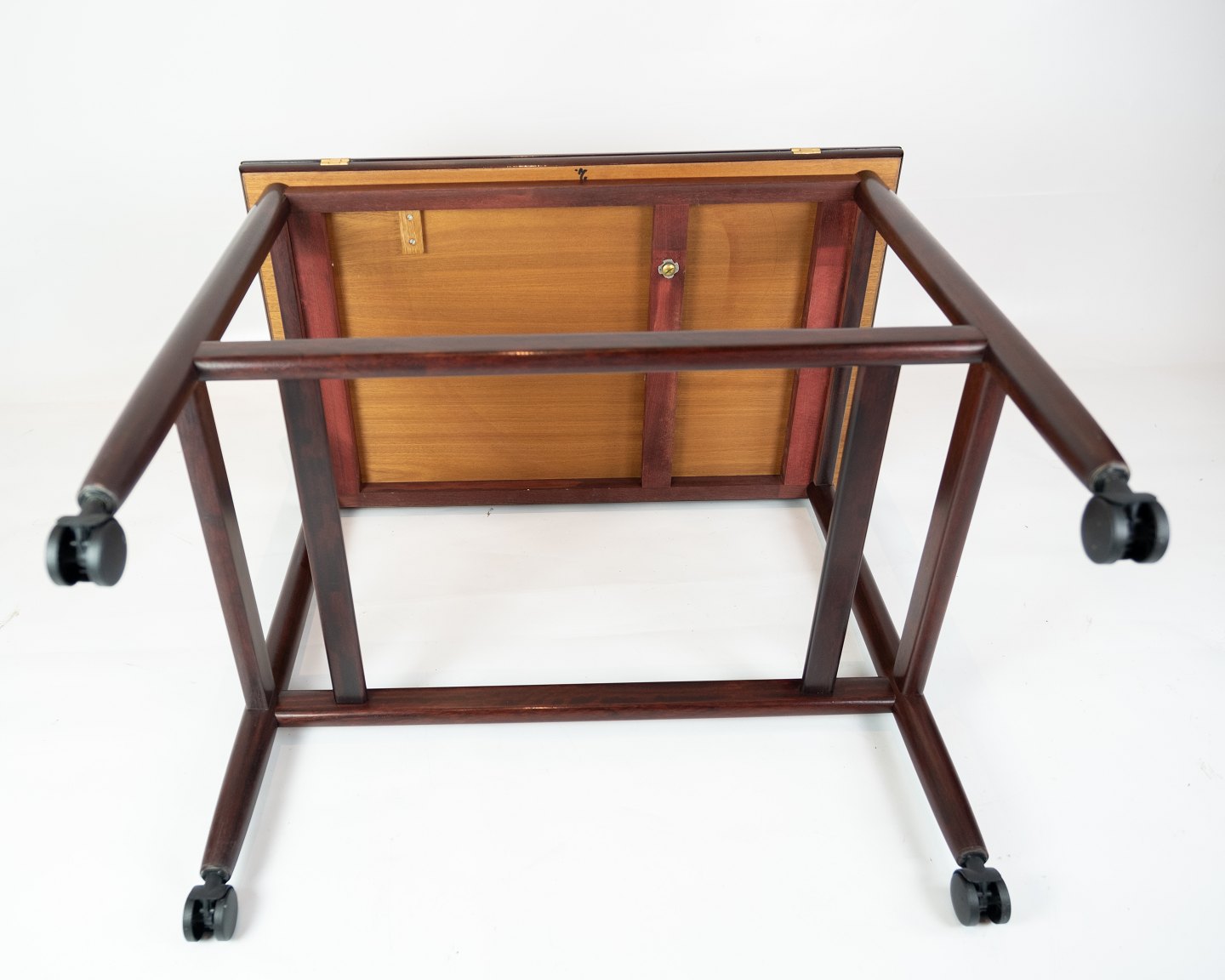 Rullebord i mahogni af designet af Børge Mogensen fra 1960erne. Den øverste plade kan foldes ud.