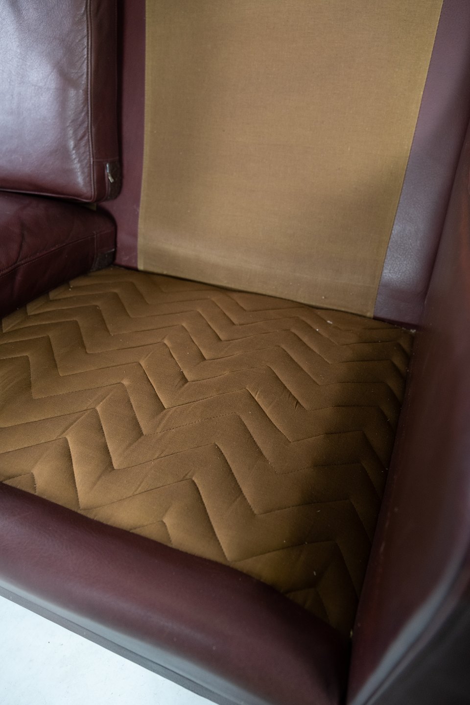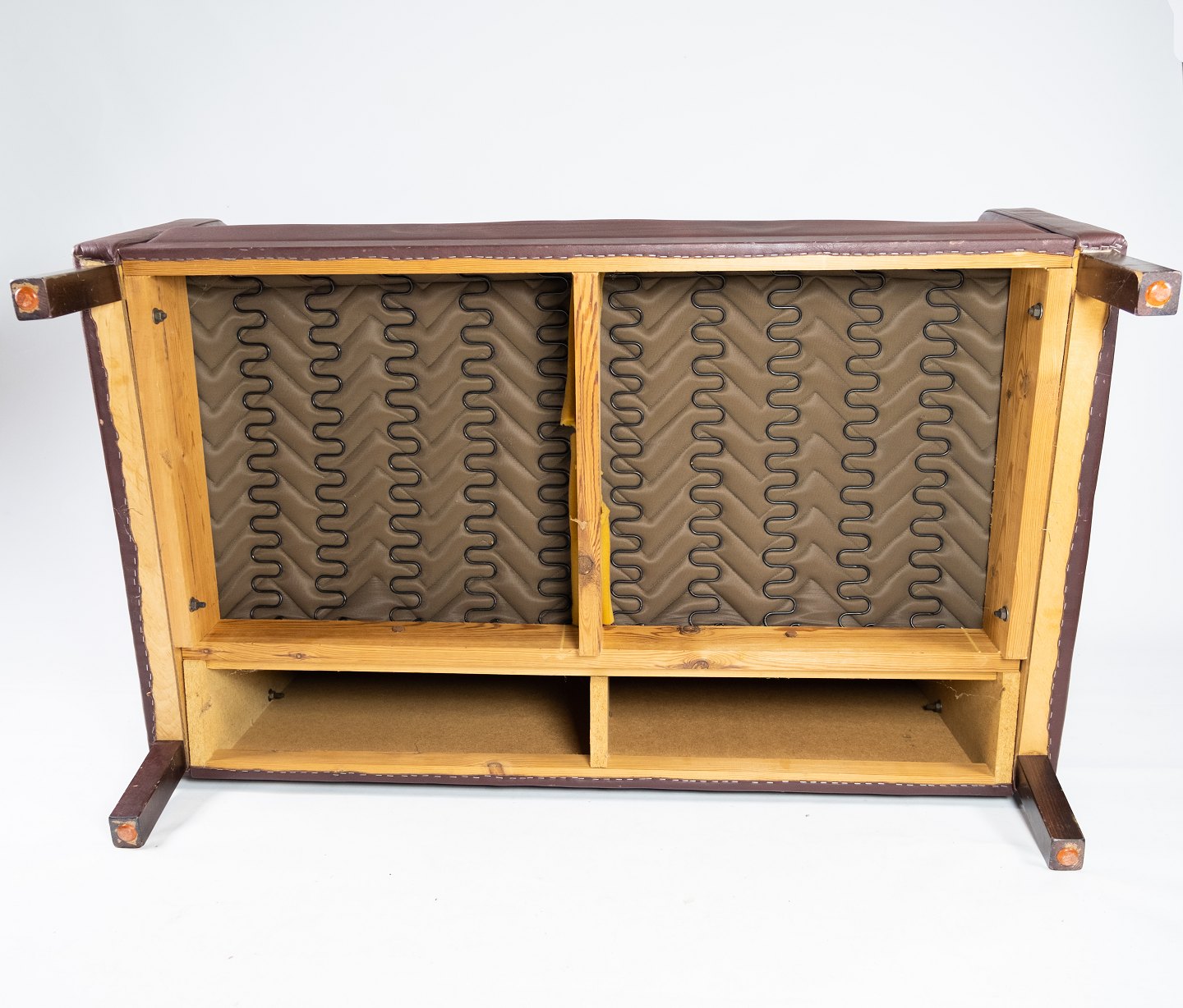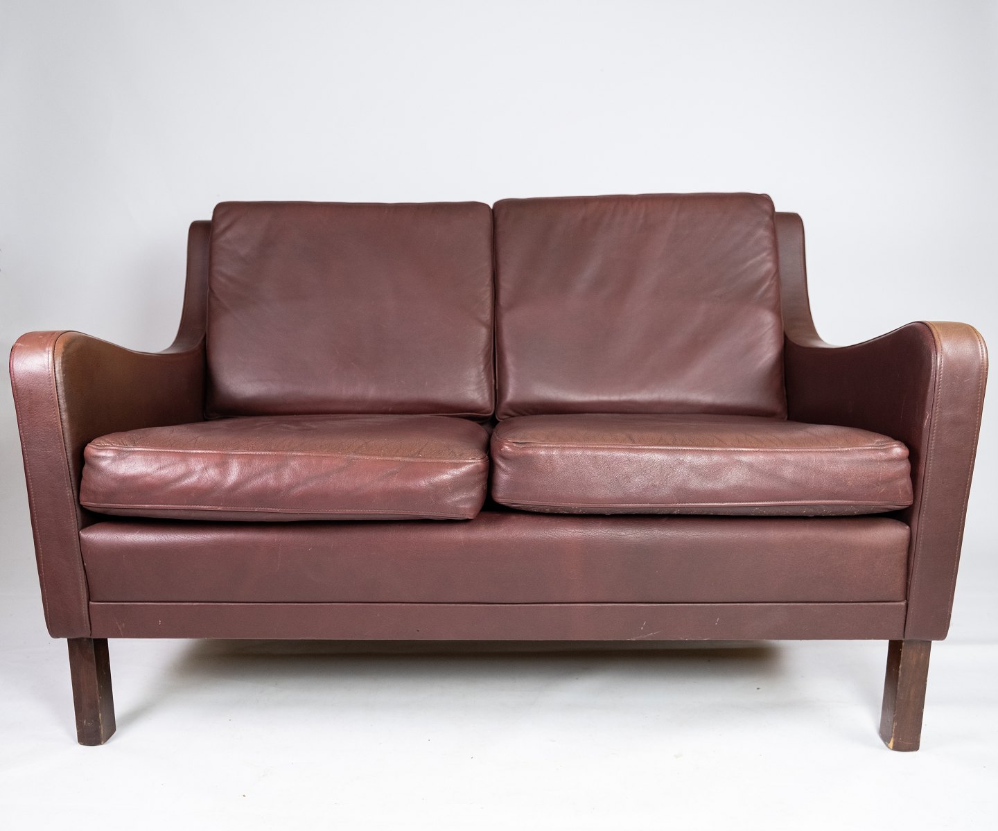 To personers sofa, med rødbrunt læder af Stouby Møbler.