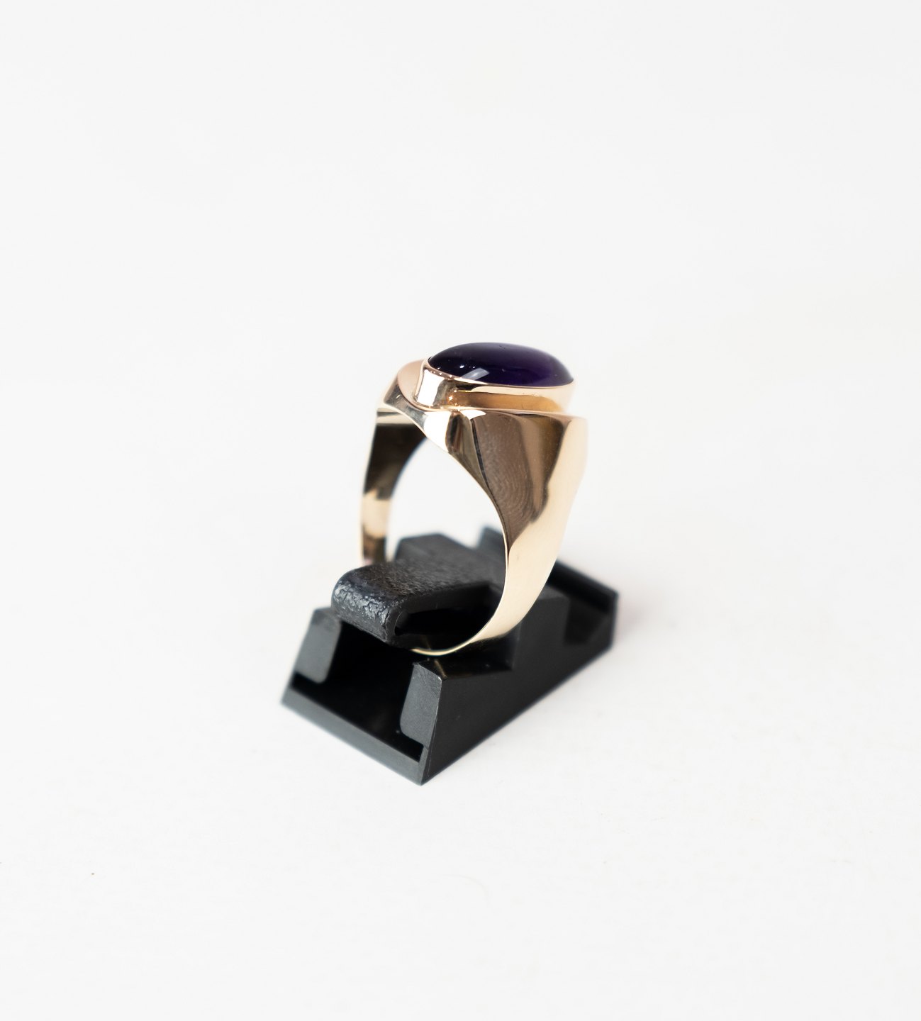 Ring decorated with amethyst and of 14 carat gold, stamped FF.