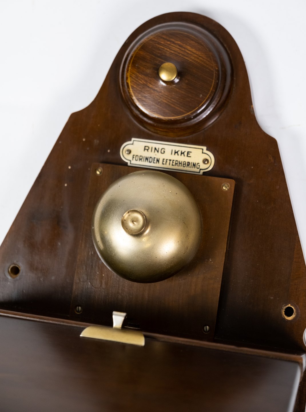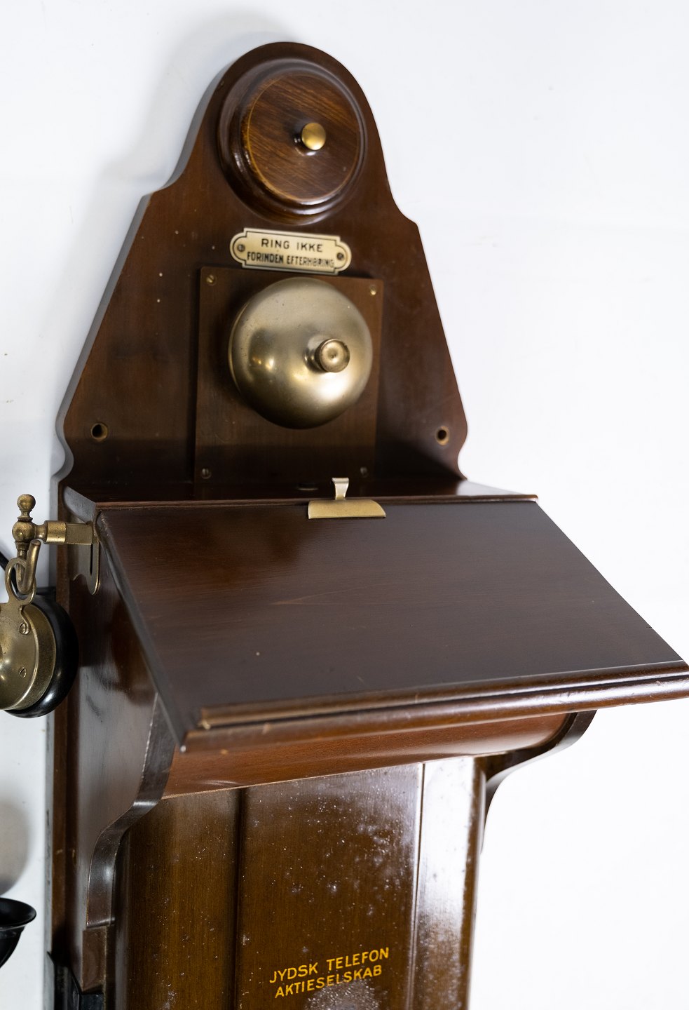 SoldOld phone from Jydsk Phone Stock company of dark wood.