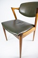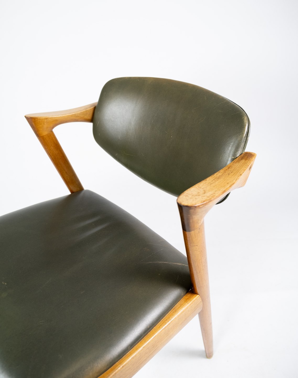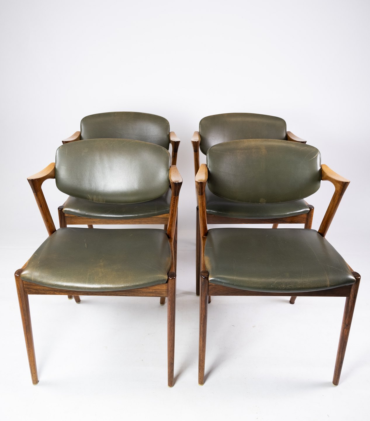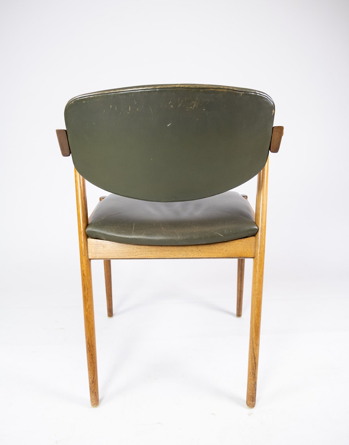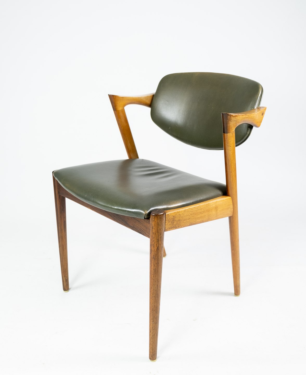 Model 42 er karakteriseret ved sine rene linjer, ergonomiske former og fremragende håndværk. Stolenes elegante og funktionelle design gør dem ideelle til både moderne og klassiske indretninger. Det let skrånende ryglæn og de polstrede sæder sikrer optimal siddekomfort, mens de solide trærammer giver langvarig holdbarhed.
