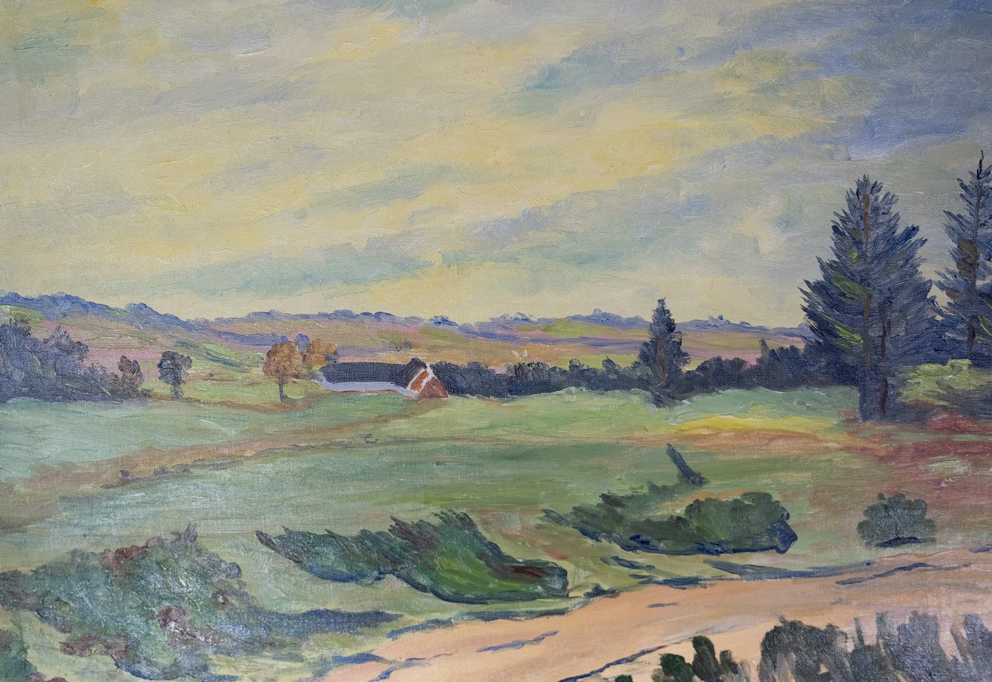 Oil painting with nature motif and gilded frame, signed V. Hartnack by Valdemar Hartnack 1895-1969.