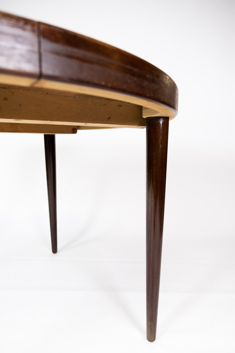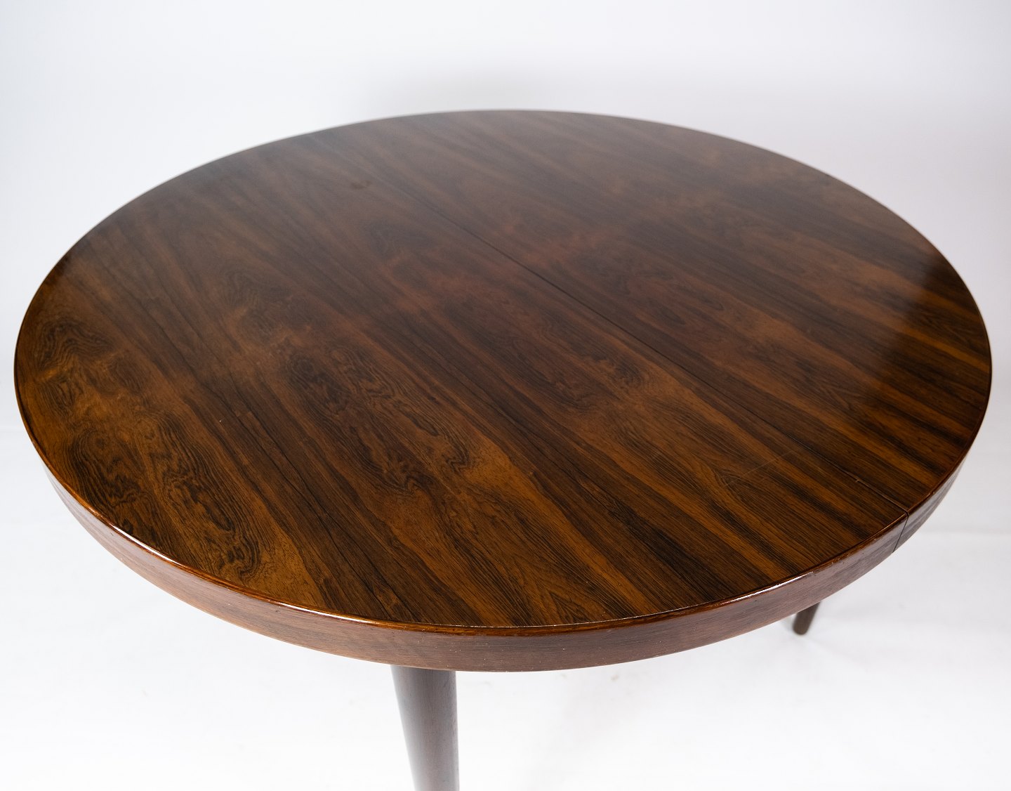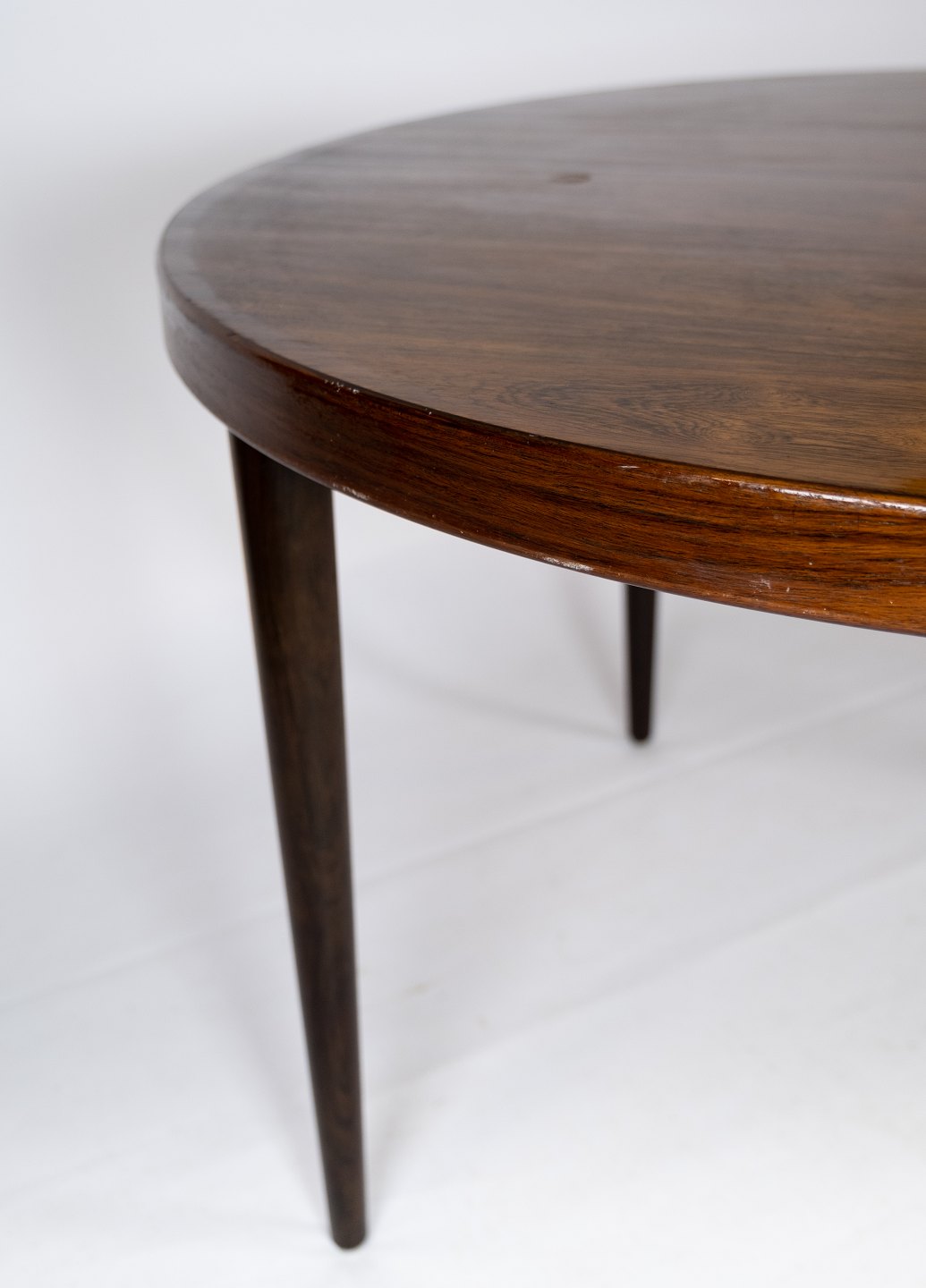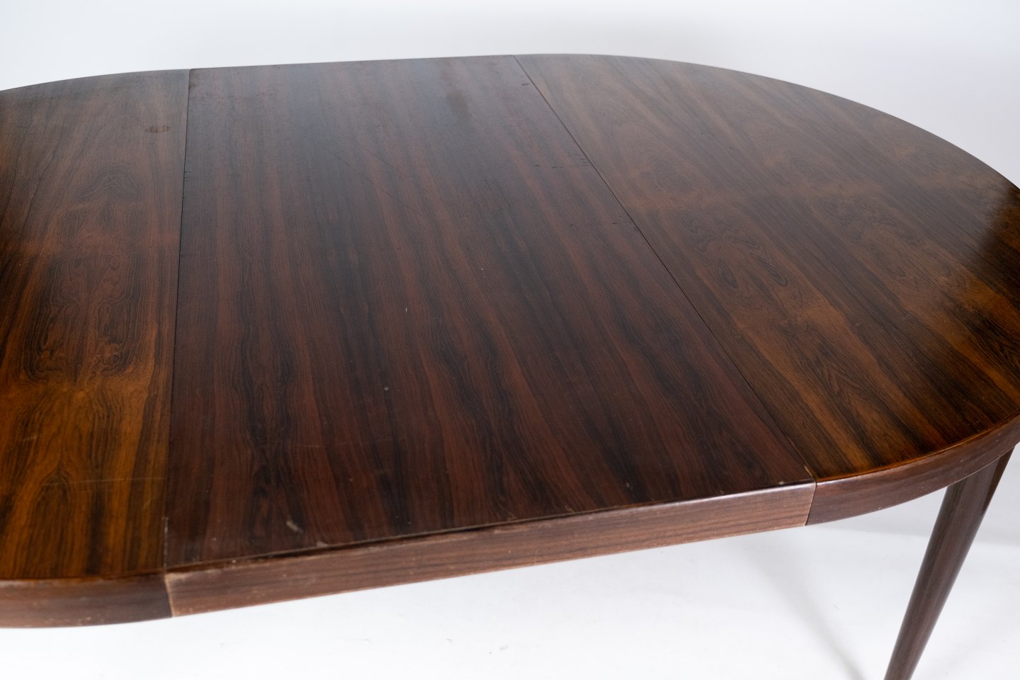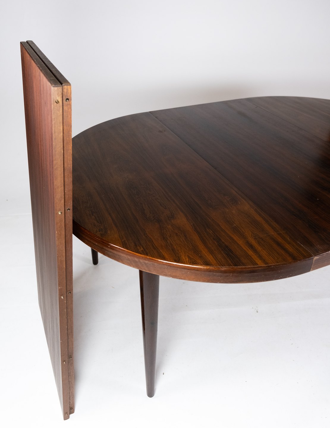 SolgtSpisebord i palisander designet af Omann Junior fra 1960erne. Bordet er i flot brugt stand og med tre tilhørende tillægsplader.