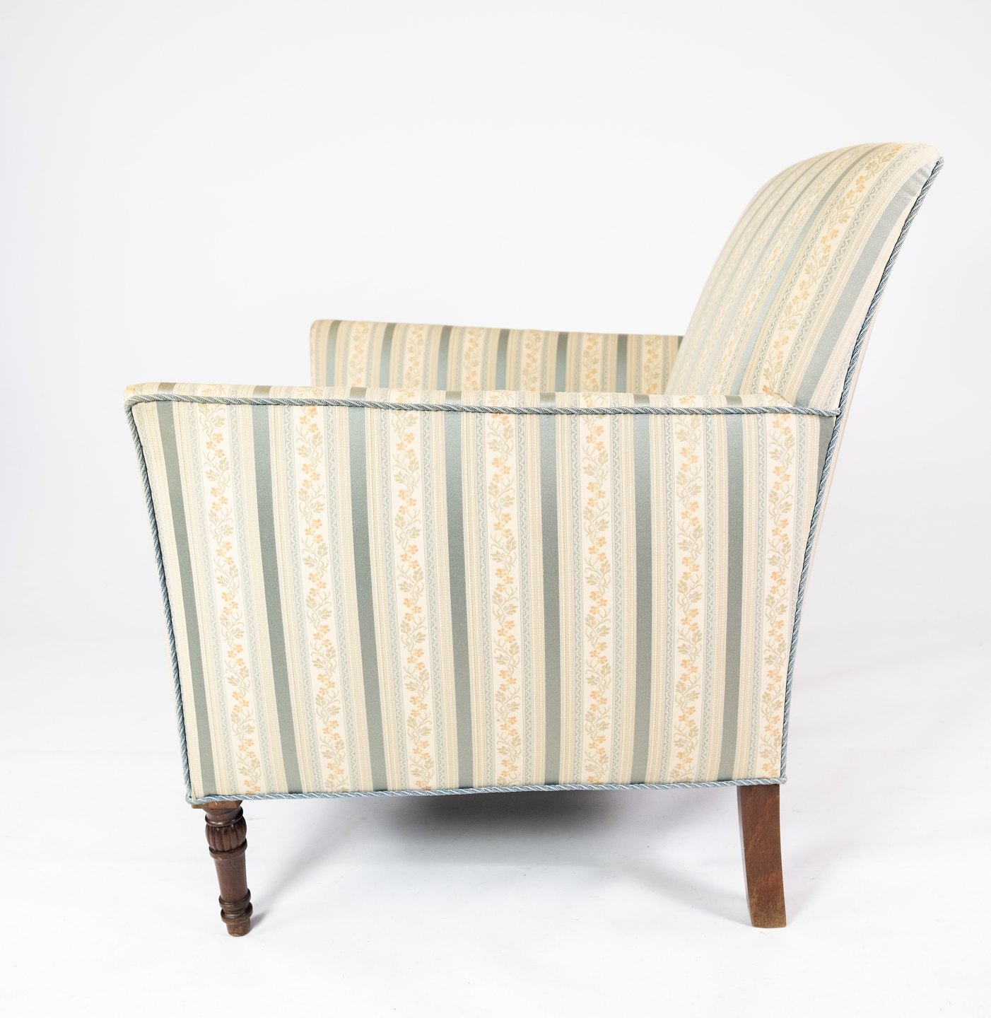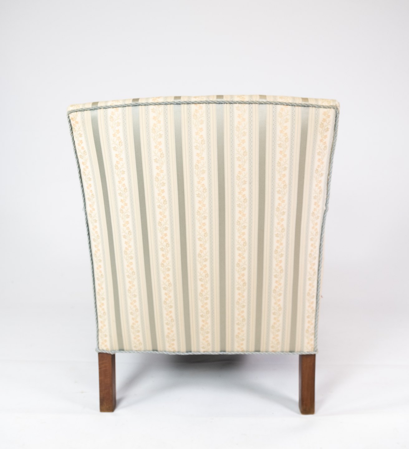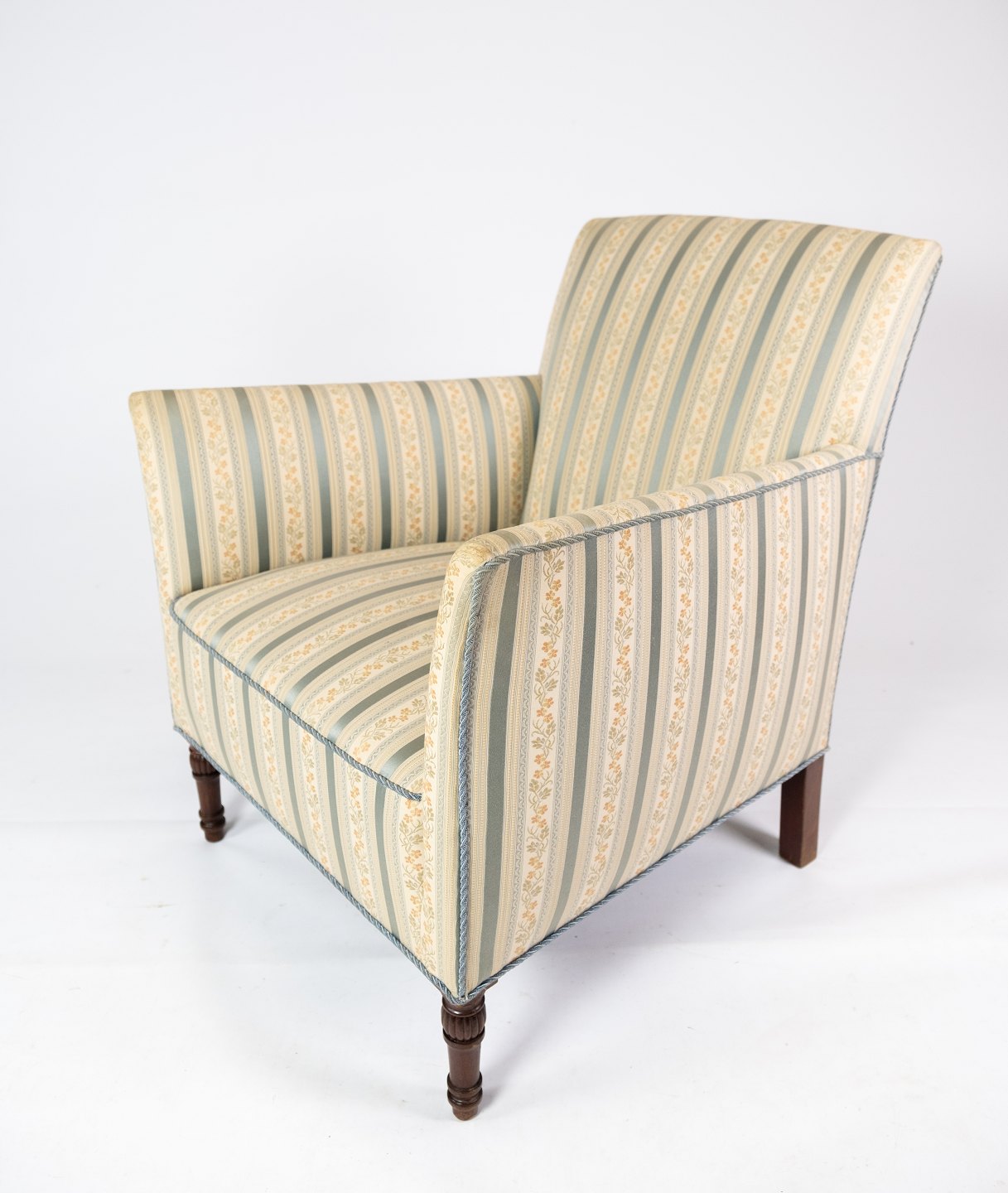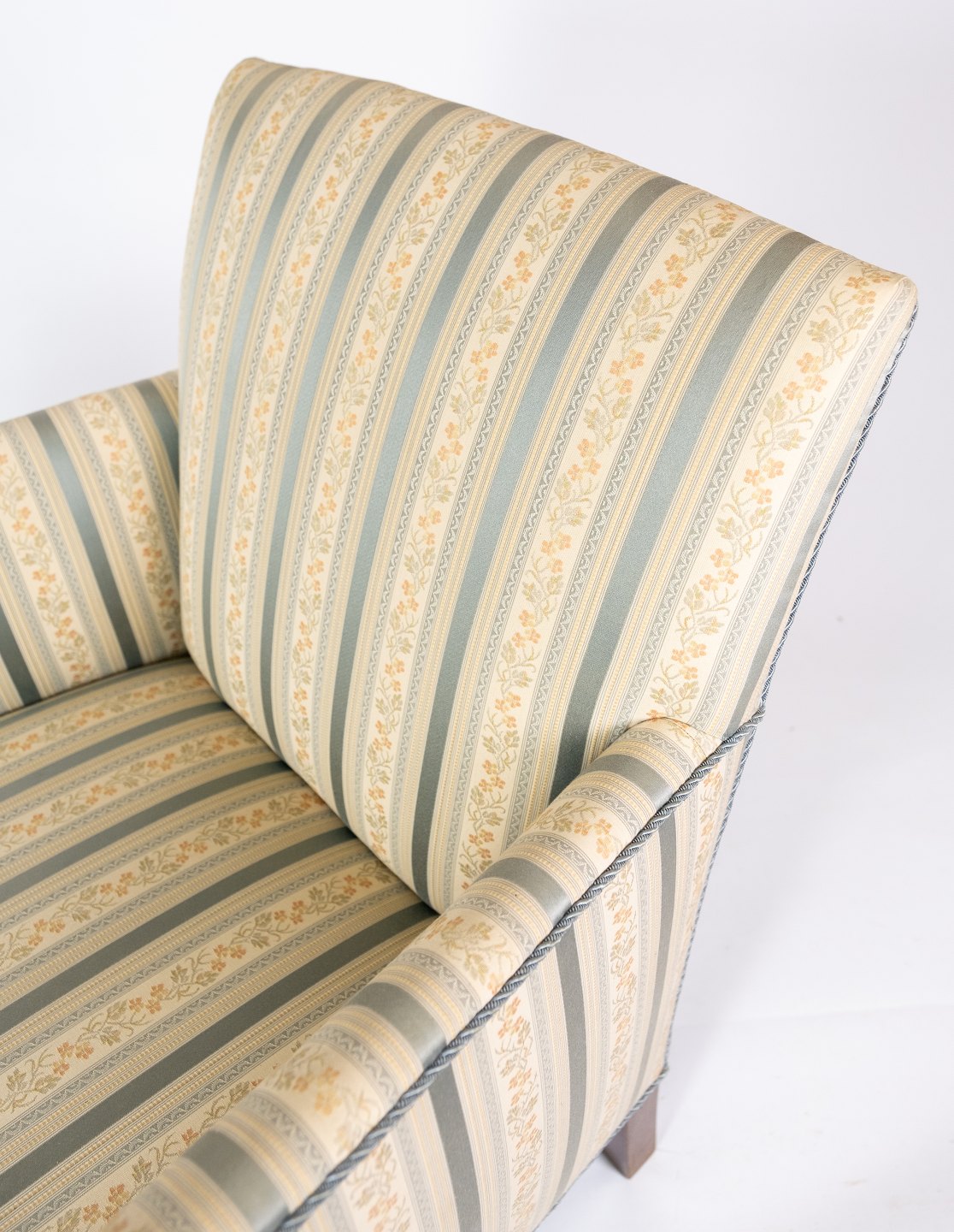 SolgtEt sæt hvilestole polstret med stribet stof og ben af mahogni, fra 1920erne. Stolene er i flot brugt stand.