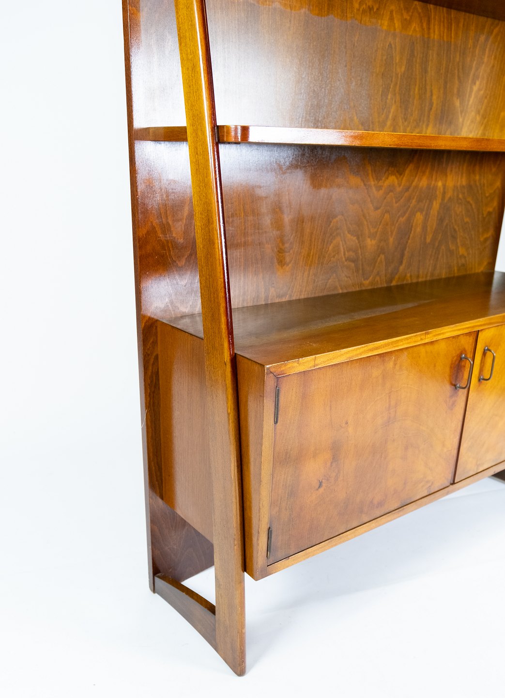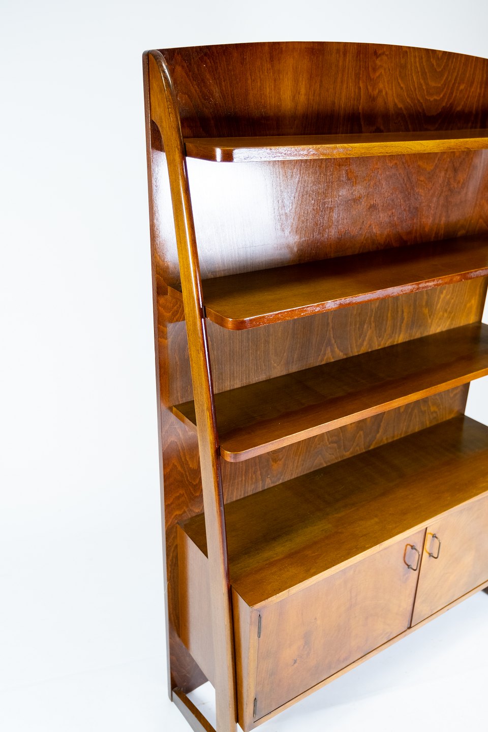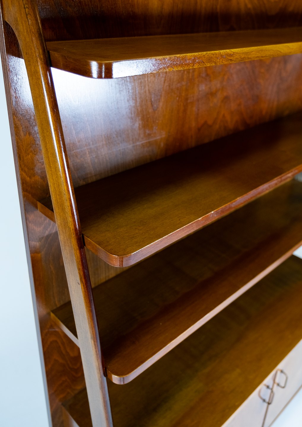 Bookcase with cabinet beneath in walnut of danish design from the 1950s.