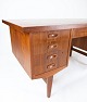 SolgtSkrivebord i teak af dansk design fra 1960erne. Bordet er i flot brugt stand.