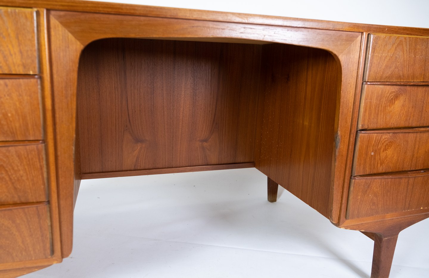 Dette skrivebord er et tidløst stykke dansk design fra 1960'erne, lavet af teaktræ. Det har en enkel og elegant æstetik, der passer perfekt til både moderne og vintage-indretninger.