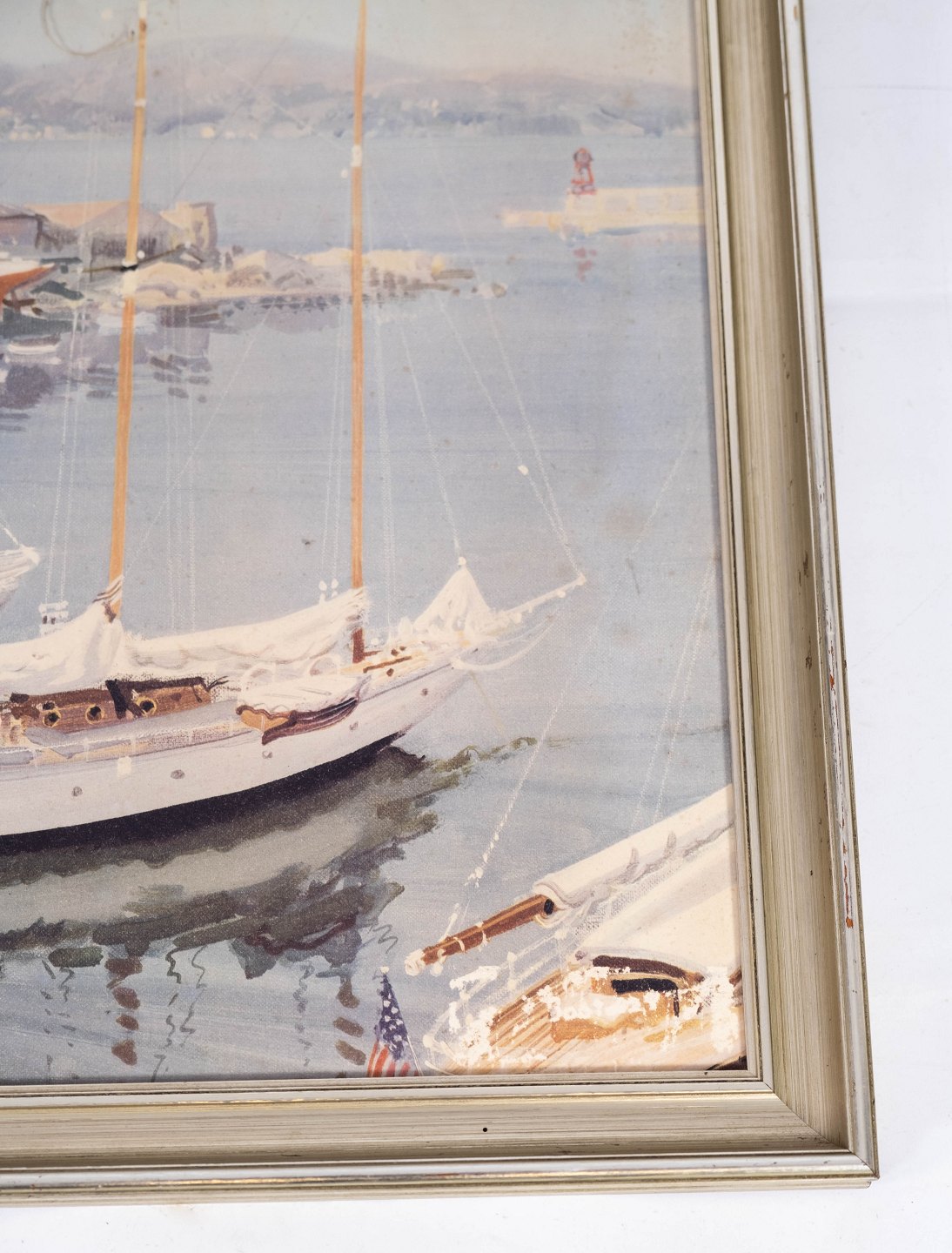 Tryk med havne motiv med ukendt signatur fra 1950erne.