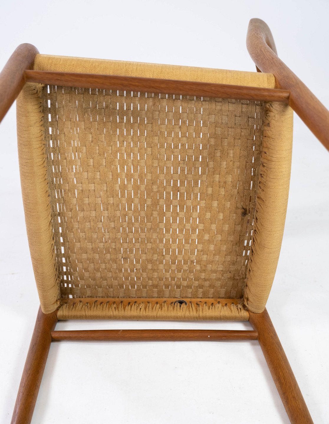 SolgtEt sæt af fire spisestuestole, model 75, i eg og papirflet designet af N.O. Møller fra 1960erne. Stolene er i flot brugt stand.