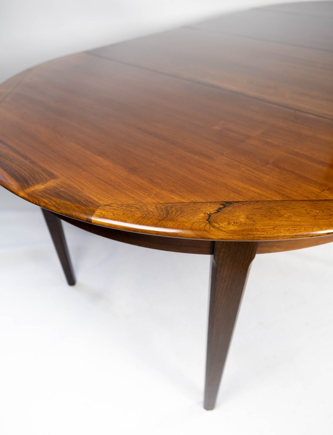 Dining table in rosewood with two extension plates, of danish design from the 1960s. The table is in great vintage condition.