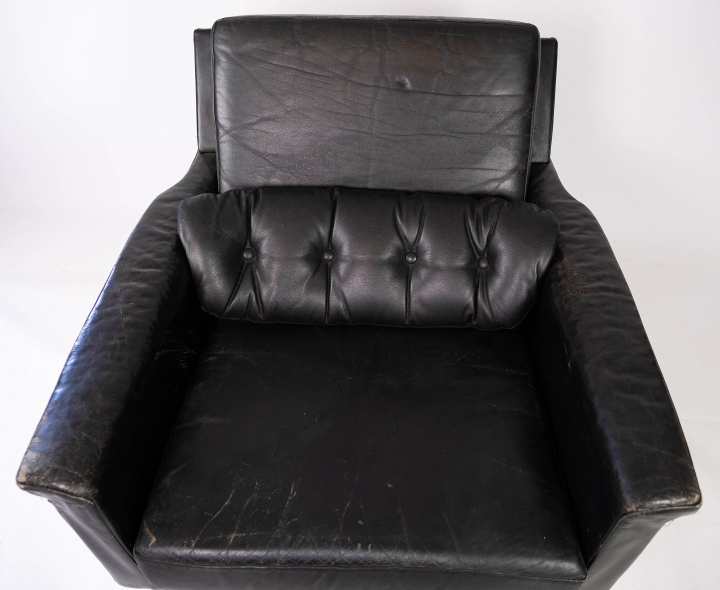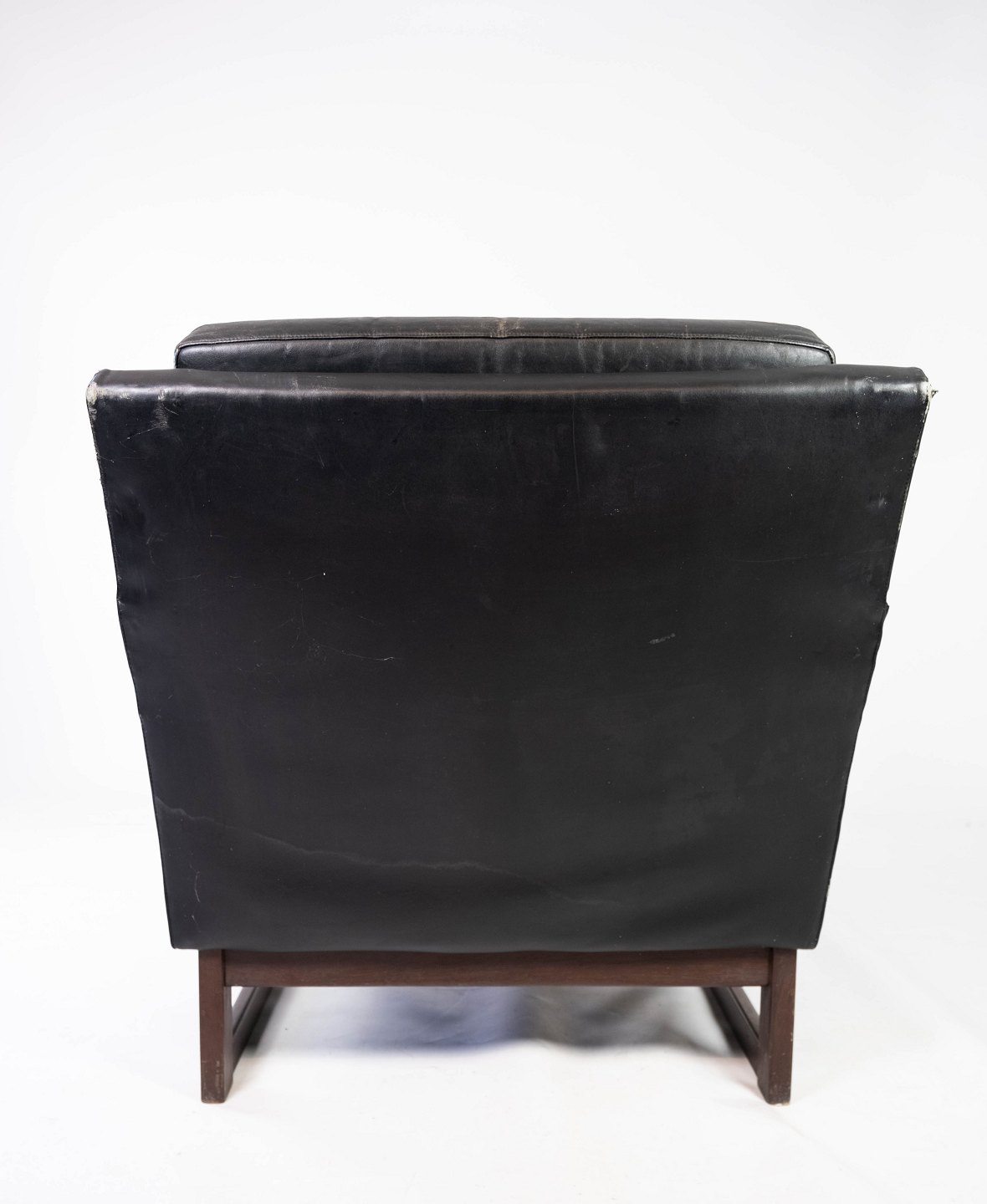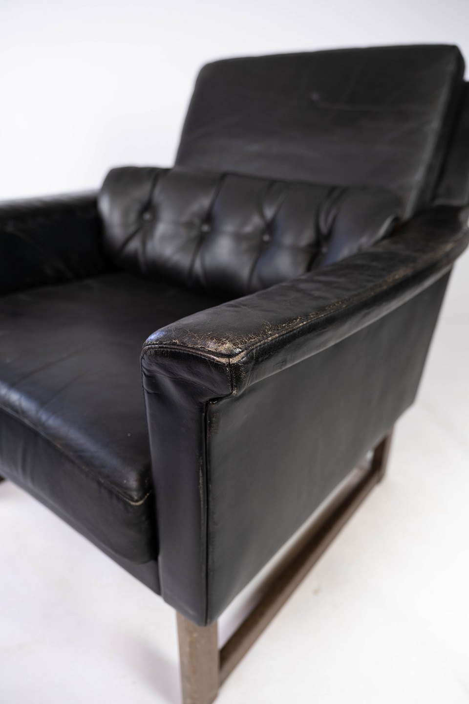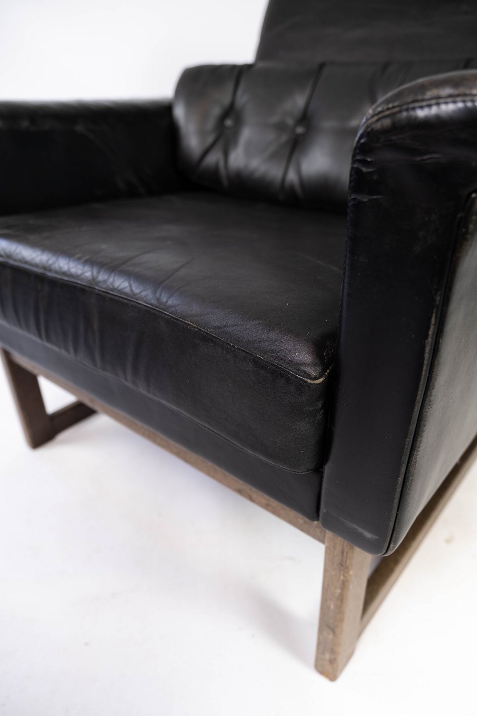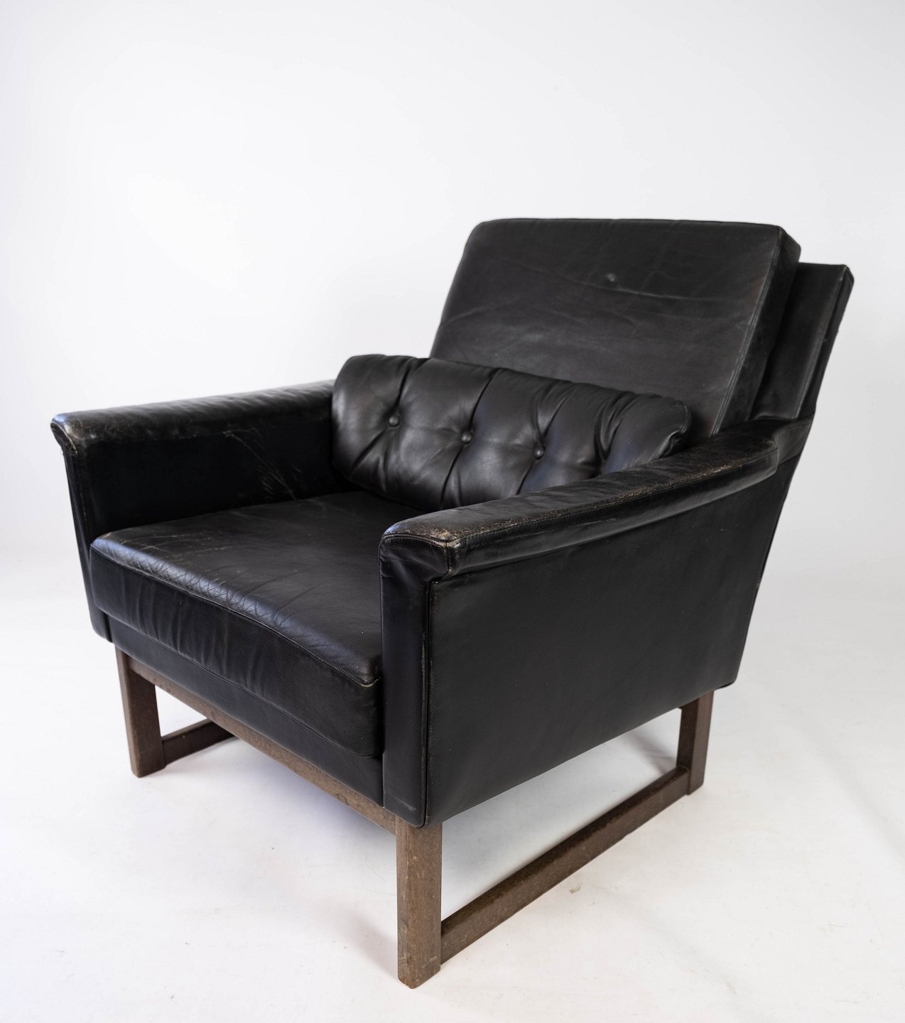 SolgtHvilestol polstret med sort læder og ben i træ, designet af Illum Wikkelsø fra 1960erne. Stolen er i flot brugt stand.