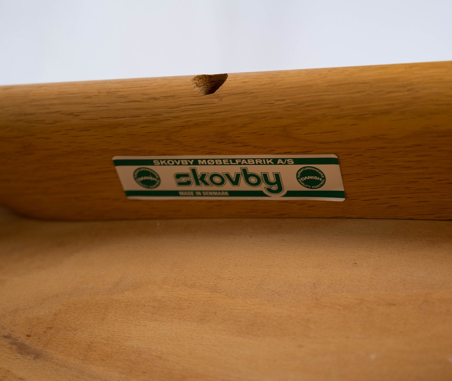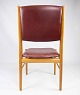 SoldSet of six dining room chairs of oak and upholstered with bordeaux leather, of danish design from the 1960s.