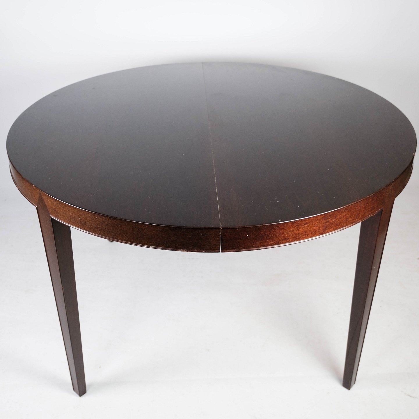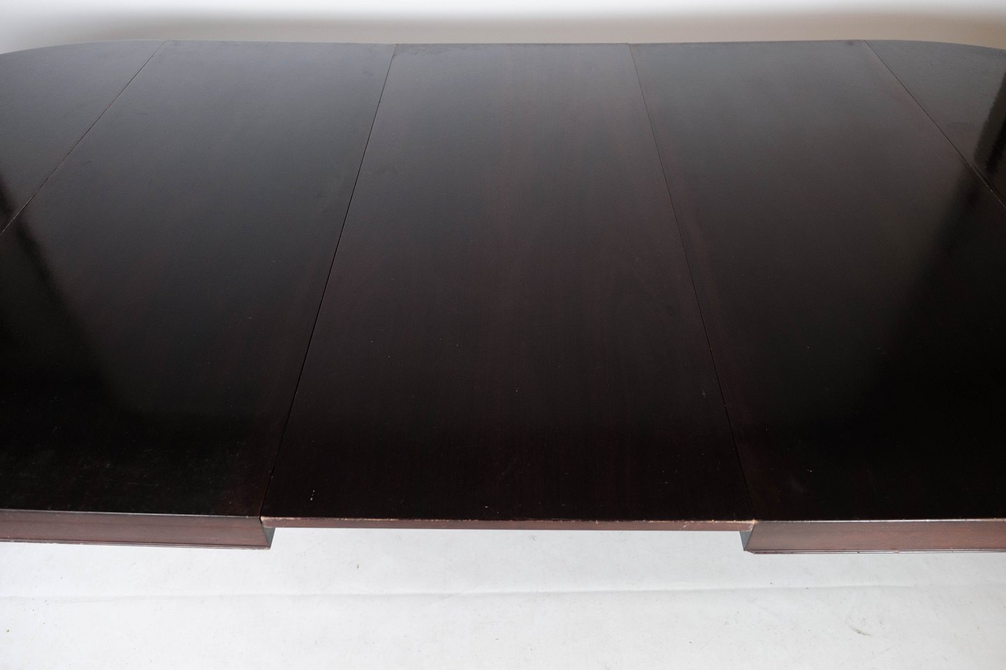 Dining table in mahogany with three extension plates, of Danish design manufactured by Haslev Furniture in the 1960s.
