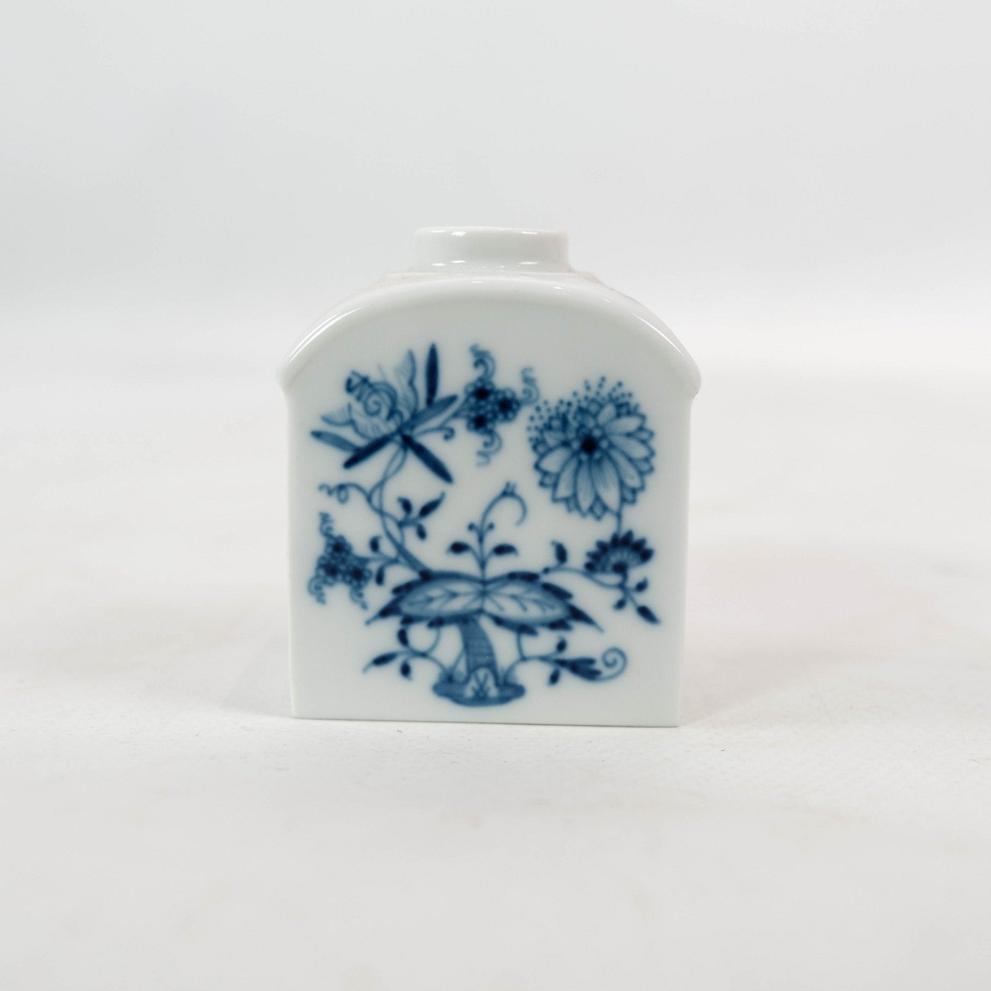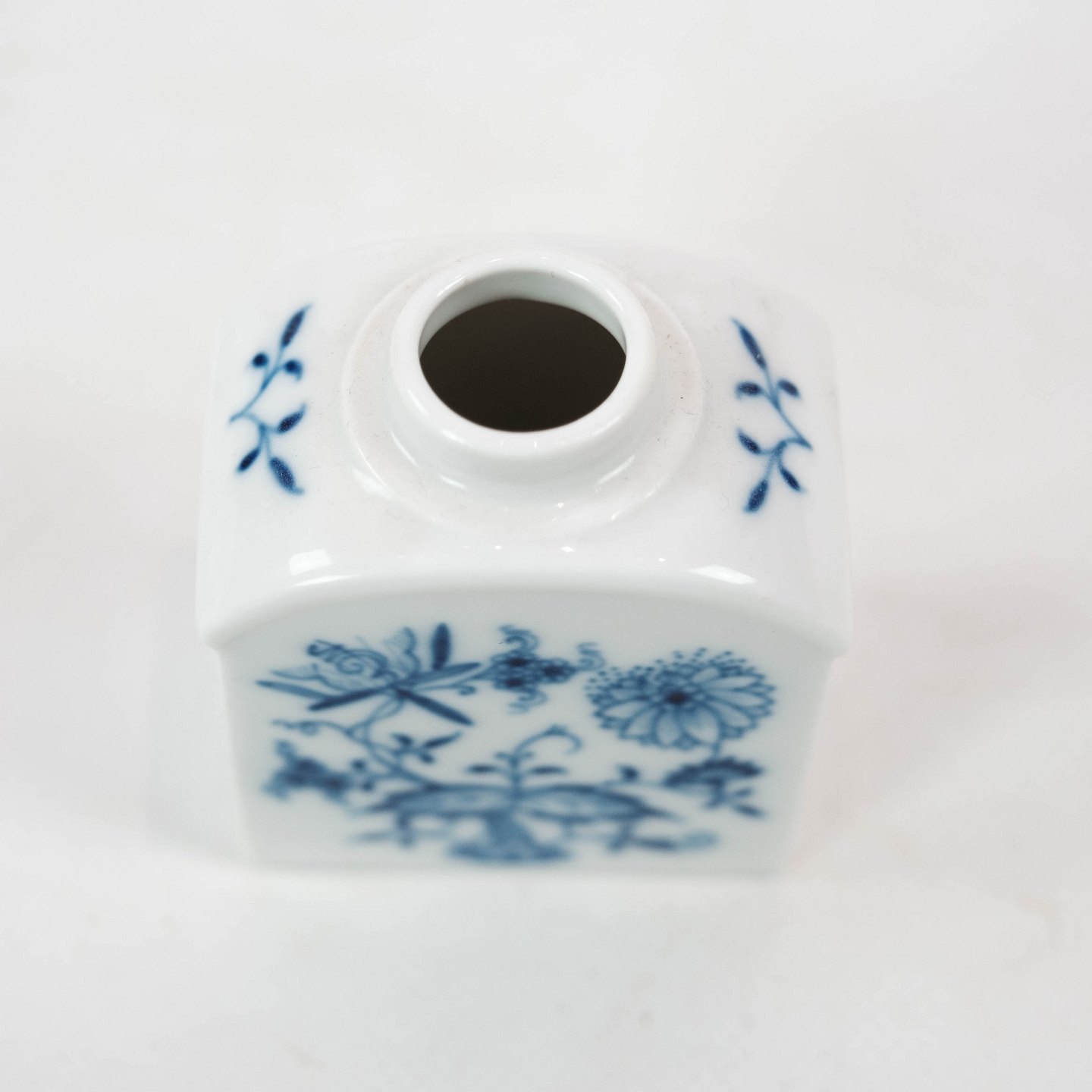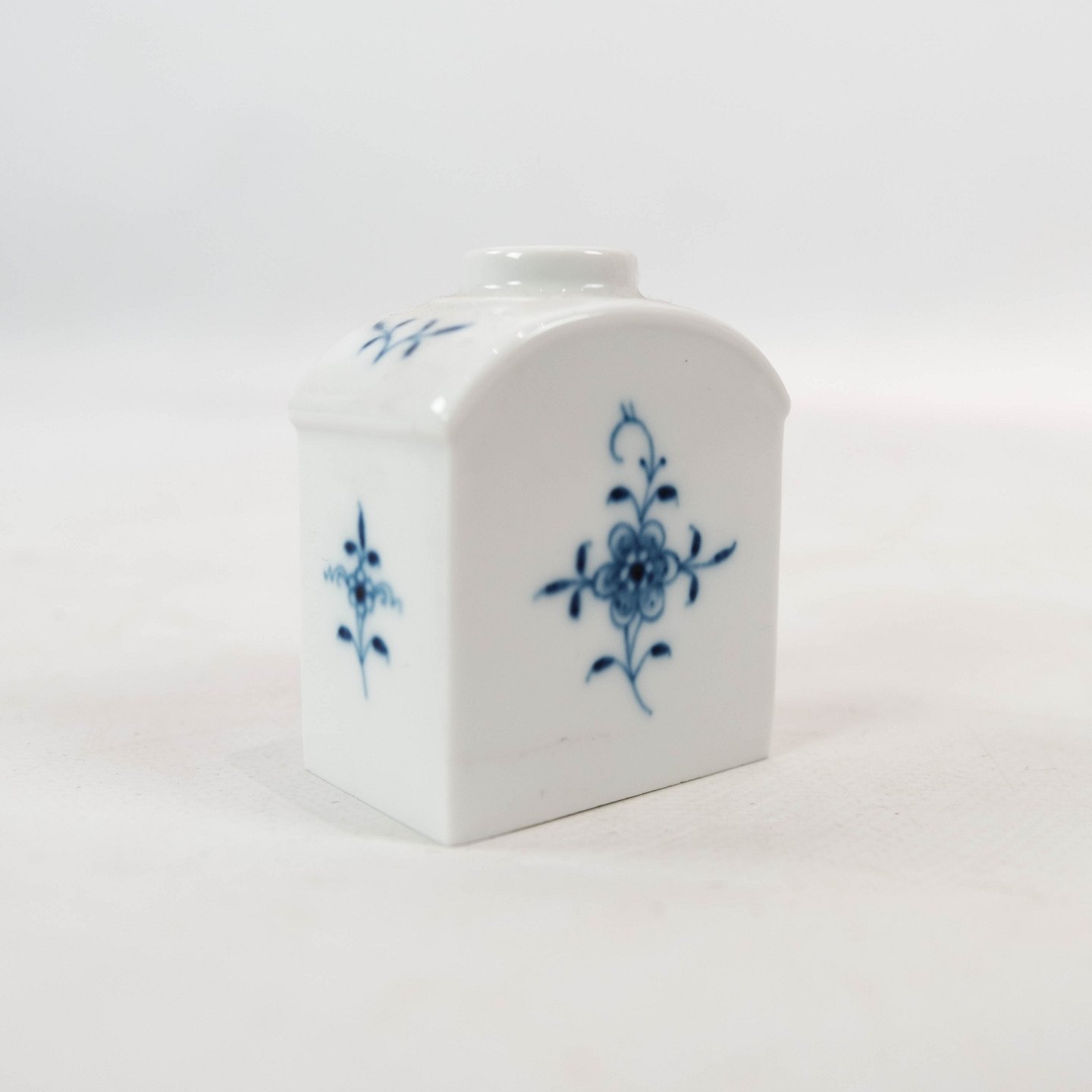 Tea jug of German Meisner porcelain decorated with blue pattern.
