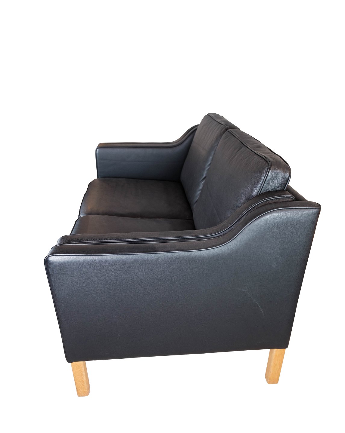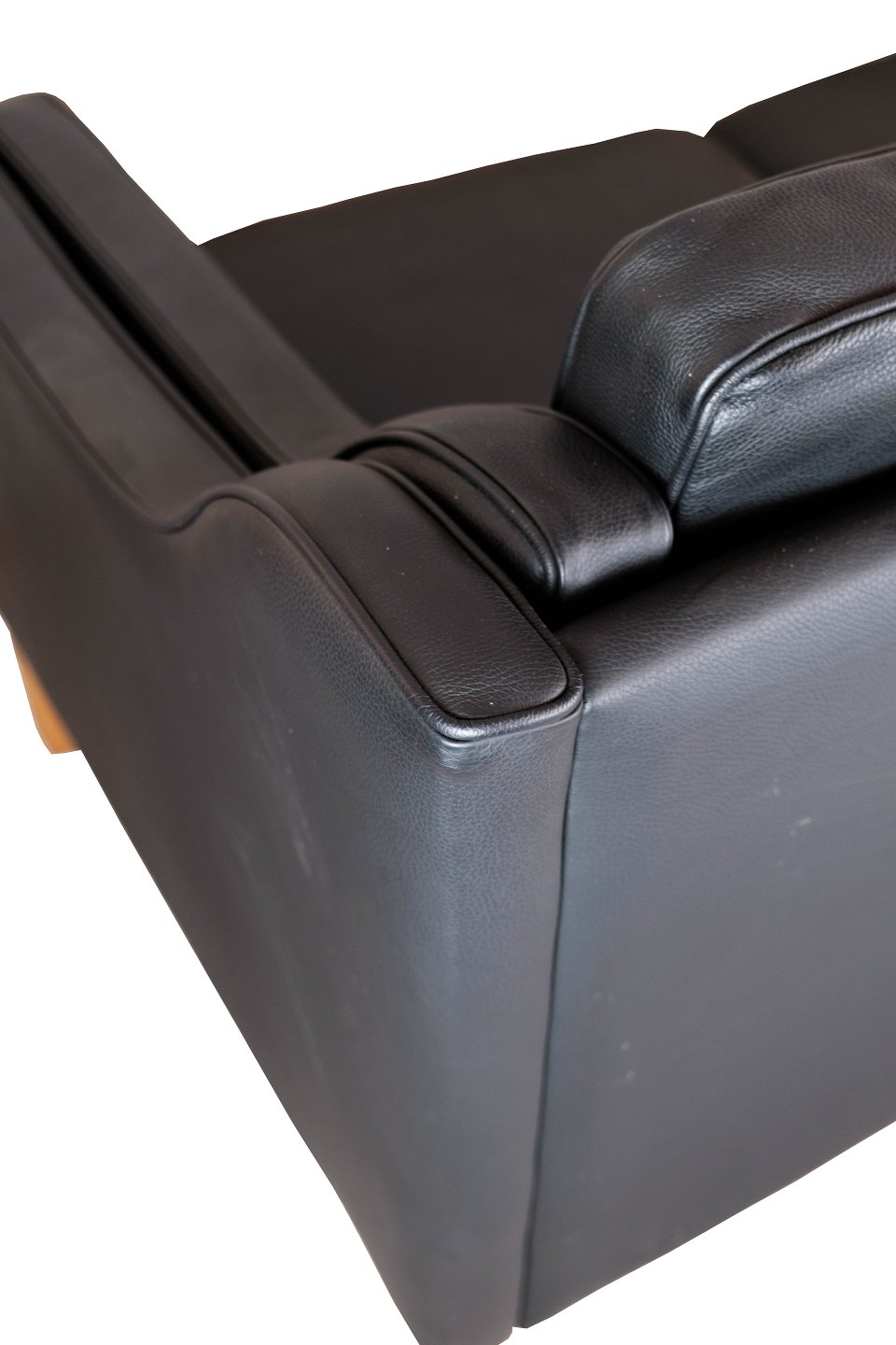 SoldThis black leather sofa was manufactured by Stouby Møbler in the 1960s and is designed for two people. It has oak legs that give it a stylish and timeless look. The sofa is in nice used condition and will be an excellent choice for those who appreciate good design and high quality. With its soft and comfortable upholstery, it is an ideal sofa for relaxation and coziness.
