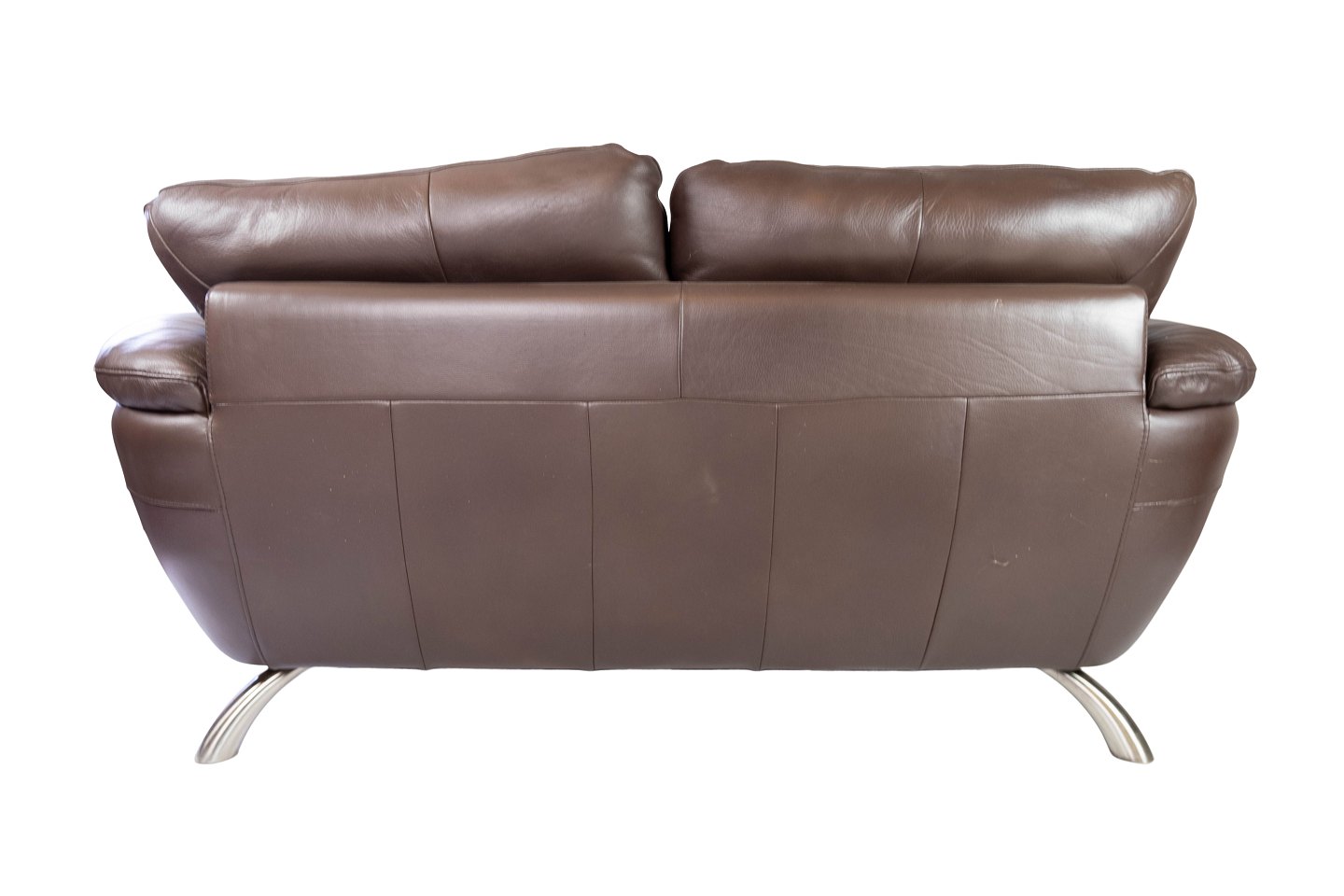 The brown leather gives the sofa a warm and inviting appearance, while being durable and easy to maintain. The metal frame adds a modern and industrial-inspired touch that gives the sofa a sophisticated look.